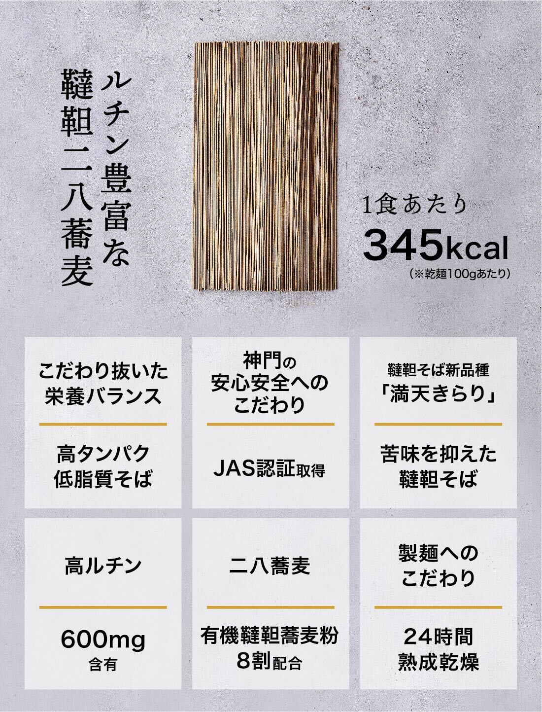 さらに、この蕎麦は豊富なルチンが含まれる韃靼そば粉が使用されています。