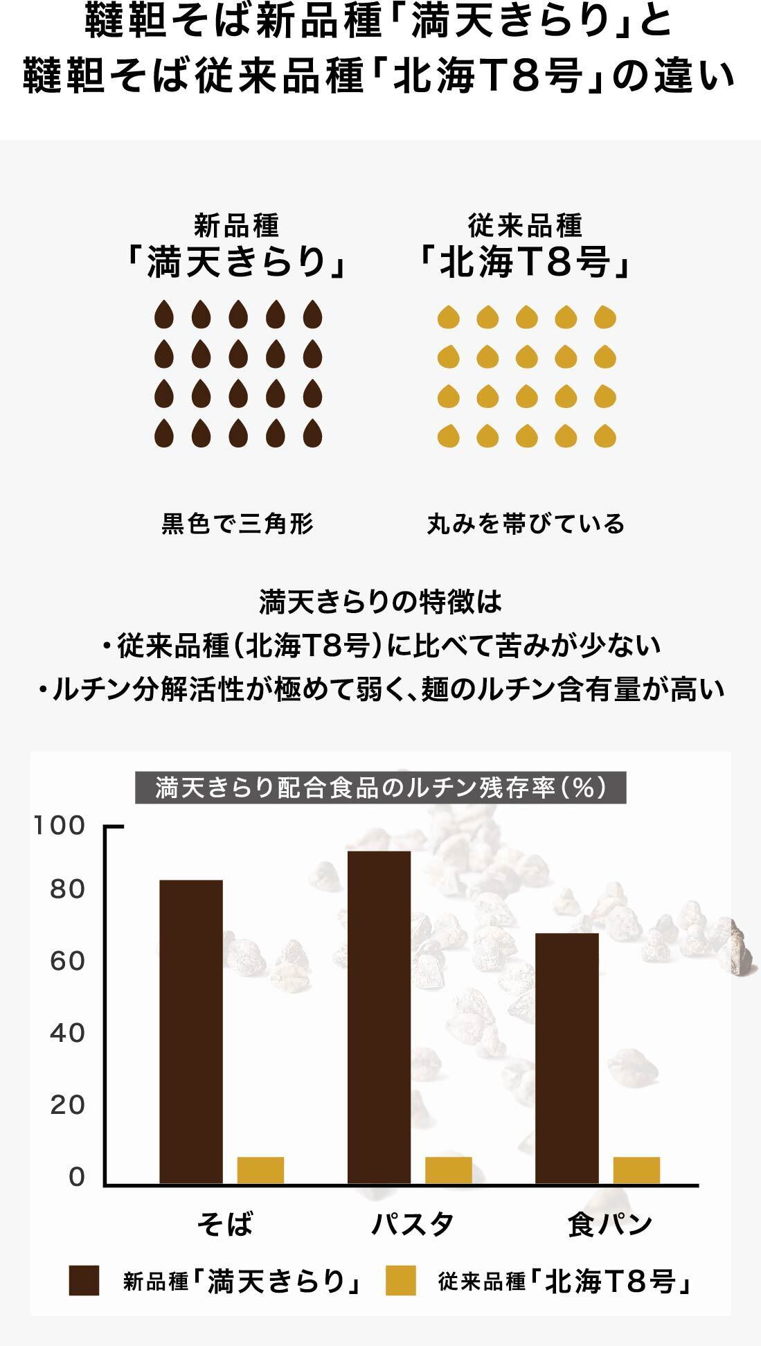 韃靼そば新品種「満天きらり」は、従来の韃靼そばよりも苦味が極めて少なく、食べやすいというメリットがあります。
