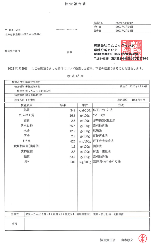 (栄養成分検査結果報告書は、ページ下部に添付)
