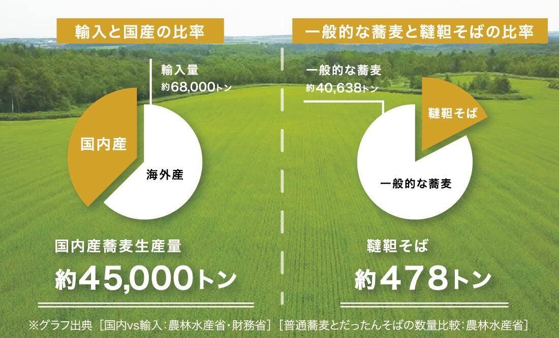 意外と知られていませんが、蕎麦粉の輸入量が、国内の生産量を上回っています。