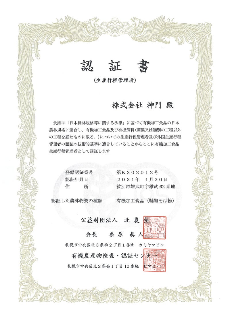 株式会社神門は、北海道オホーツク雄武町でルチン豊富な韃靼(だったん)そばを有機栽培しております。