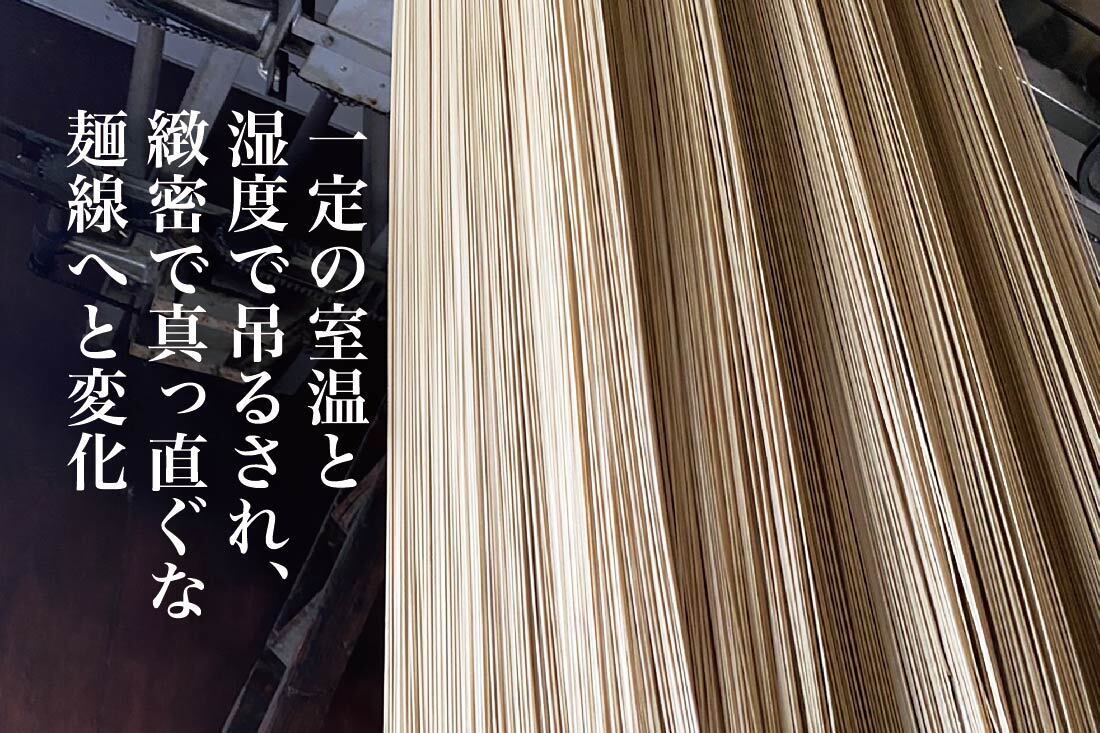 干し場の温度、湿度、空調のつよさ、日差しの入り方など、細部にも一切妥協することなく麺づくりが行われています。