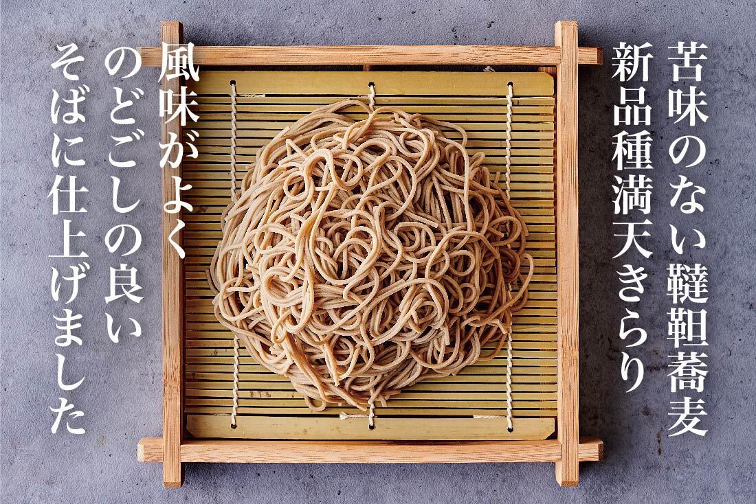 通常の韃靼そばは苦味のある商品ですが、「北ノ頂蕎麦」に使用されている韃靼そば新品種「満天きらり」では改良を重ね、苦味のない風味と喉ごしのあるそばに仕上げました。