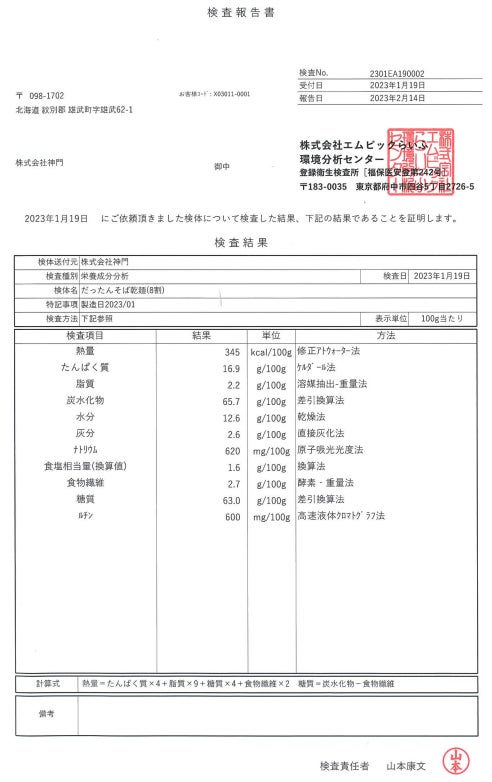 (栄養成分検査結果報告書は、ページ下部に添付)