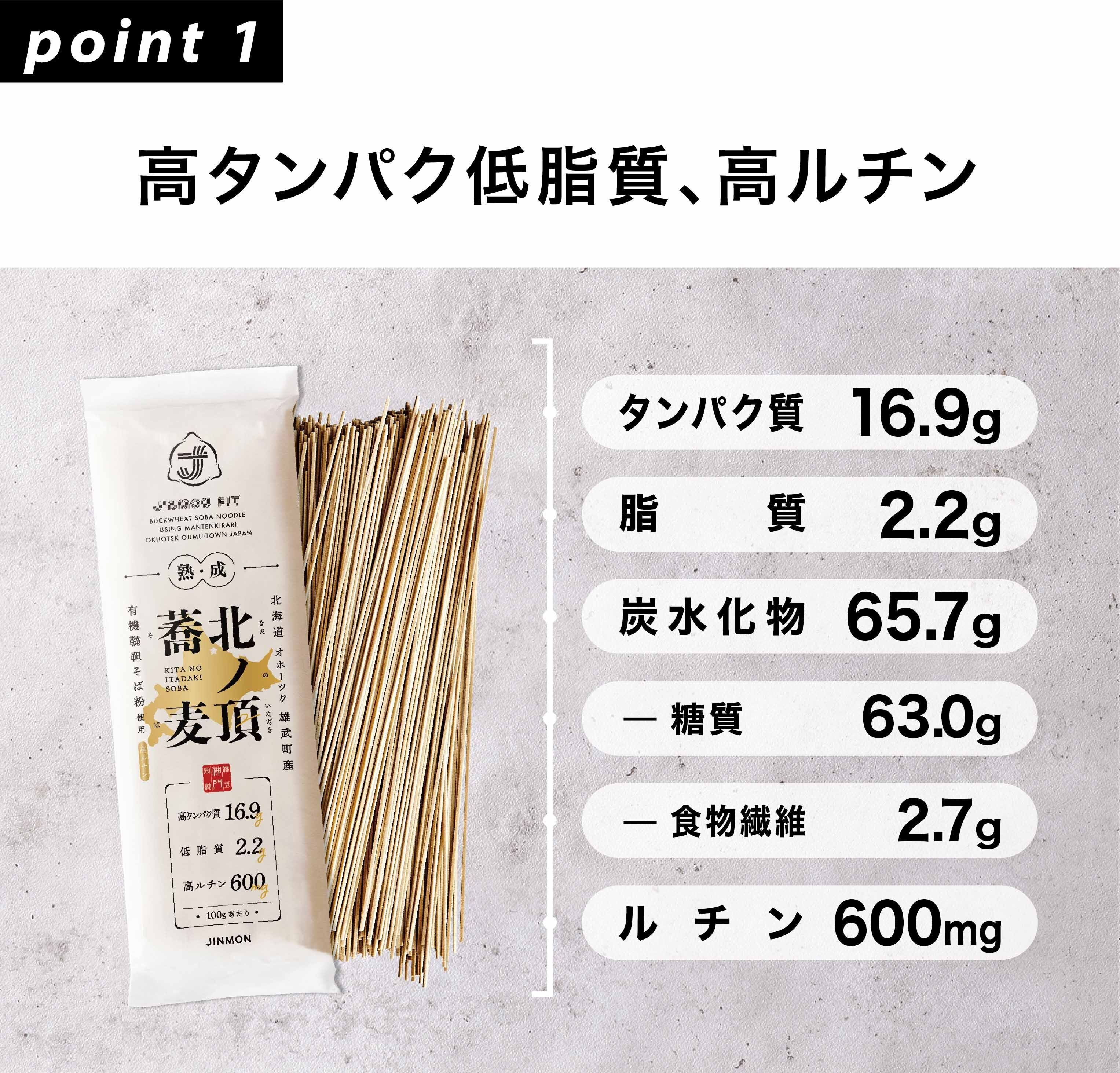 北ノ頂蕎麦では16.9gものタンパク質が含まれており、脂質はわずか2.2gしかありません。