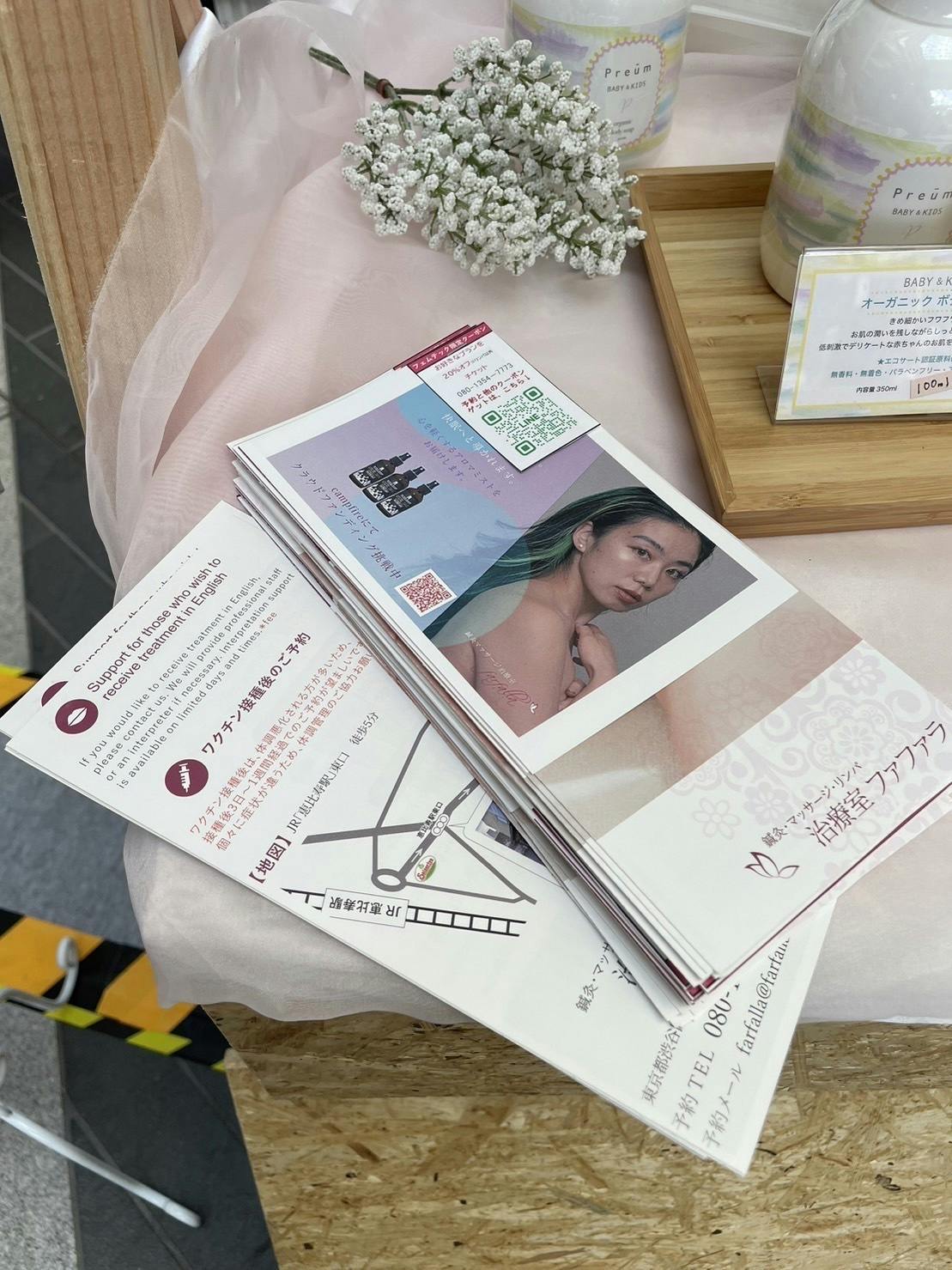 また明日もファファラのお得なクーポンとパンフレット、クラウドファンディングのチラシも用意してお待ちしています。