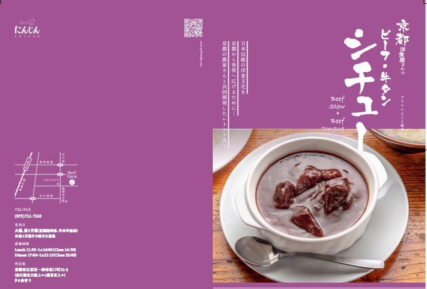 今回は京都洋食屋さんのビーフシチューと牛タンシチューのリーフレットのご紹介します。次回はにんじんスープとお米もご紹介いたします。