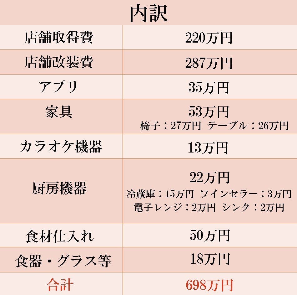 ご支援いただいた資金は以下の開業費用に充てさせていただきます。
