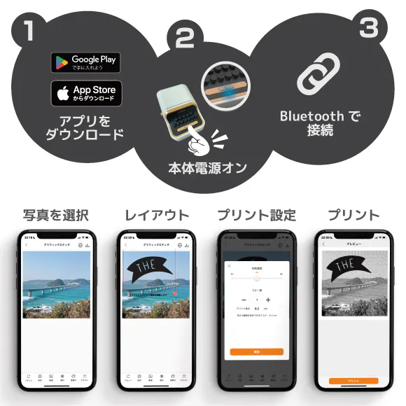 カメラロールから写真を選択して手軽に印刷できます。
