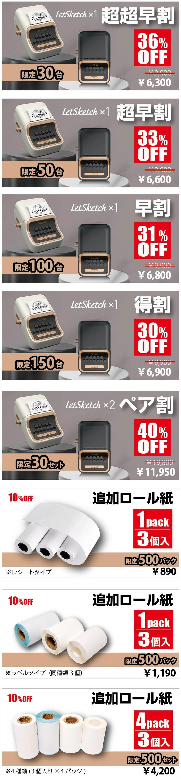 ※追加ロール紙が必要な方は、追加ロール紙のリターンもご支援ください。