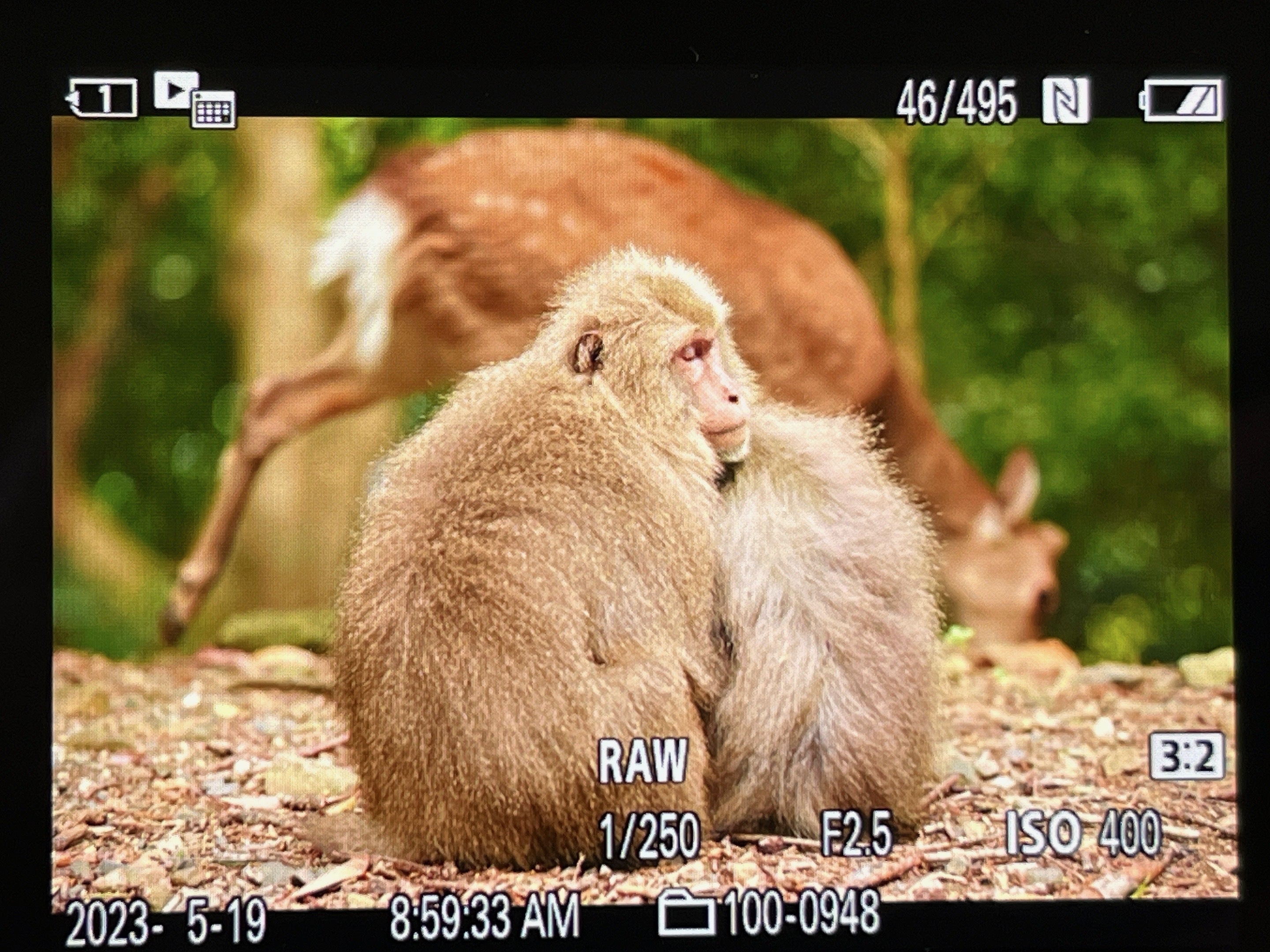 ヤクザルとヤクシカは比較的仲が良く、ヤクザルの食べこぼしをヤクシカが食べたり、ヤクザルの赤ちゃんをヤクシカが背中に乗せてあげたりと、お互いに助け合ってたくましく生きています。そのような共生の様子も写真におさめられたら...と思っています。