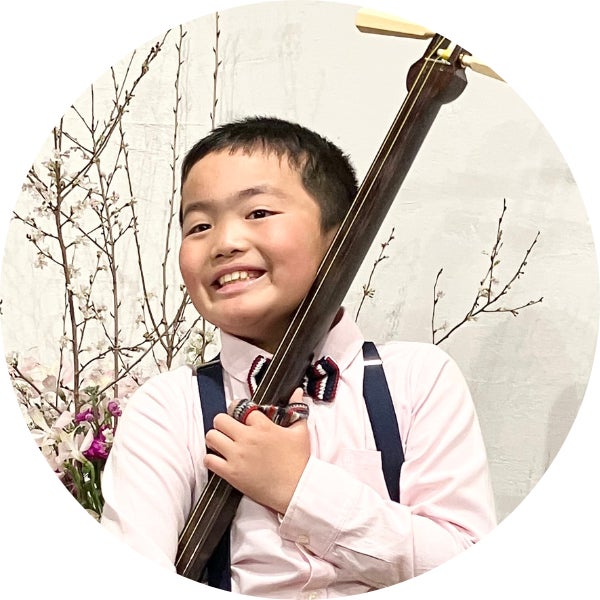 ひろくん(小学4年生)「吉田兄弟」の吉田良一郎先生より三味線の手解きを受け、2023年の津軽三味線コンクール全国大会小学生の部で初出場にして準優勝。YouTubeでは「ひろくんの民謡ばんざい!」で日々の成長を公開している。