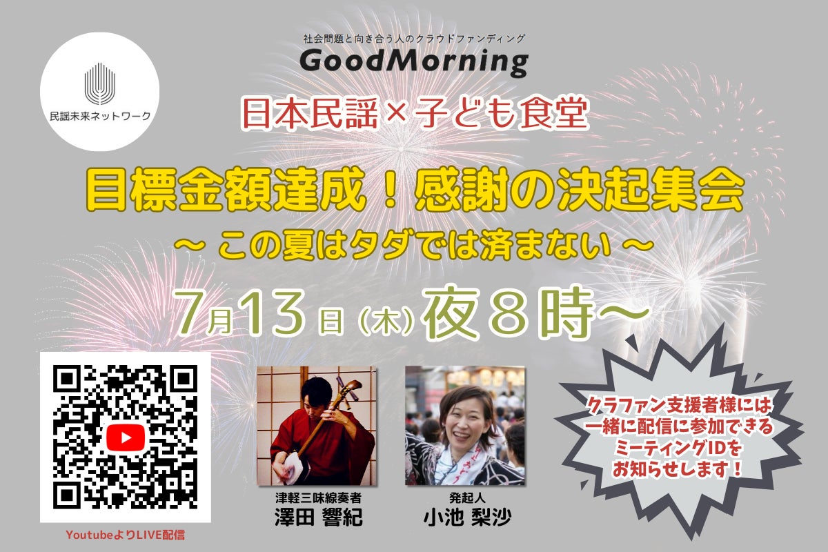 「民謡×こども食堂!民謡酒場から日本の民謡と食文化を未来に伝承したい」プロジェクトの目標金額は達成しておりますが、この度、プロジェクト終了日に合わせてライブ配信を企画しました!