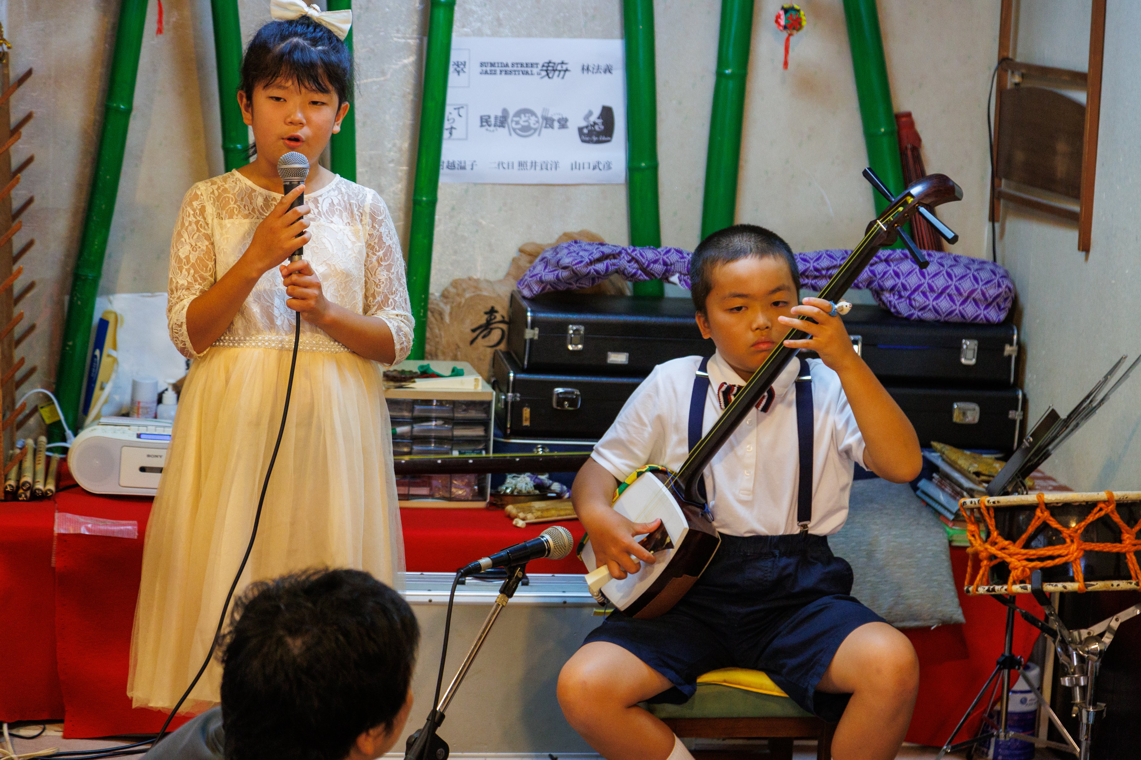 12:30からは、小学四年生コンビひろくんとしーちゃんが民謡こども食堂のオープンを記念して演奏を披露してくれました。