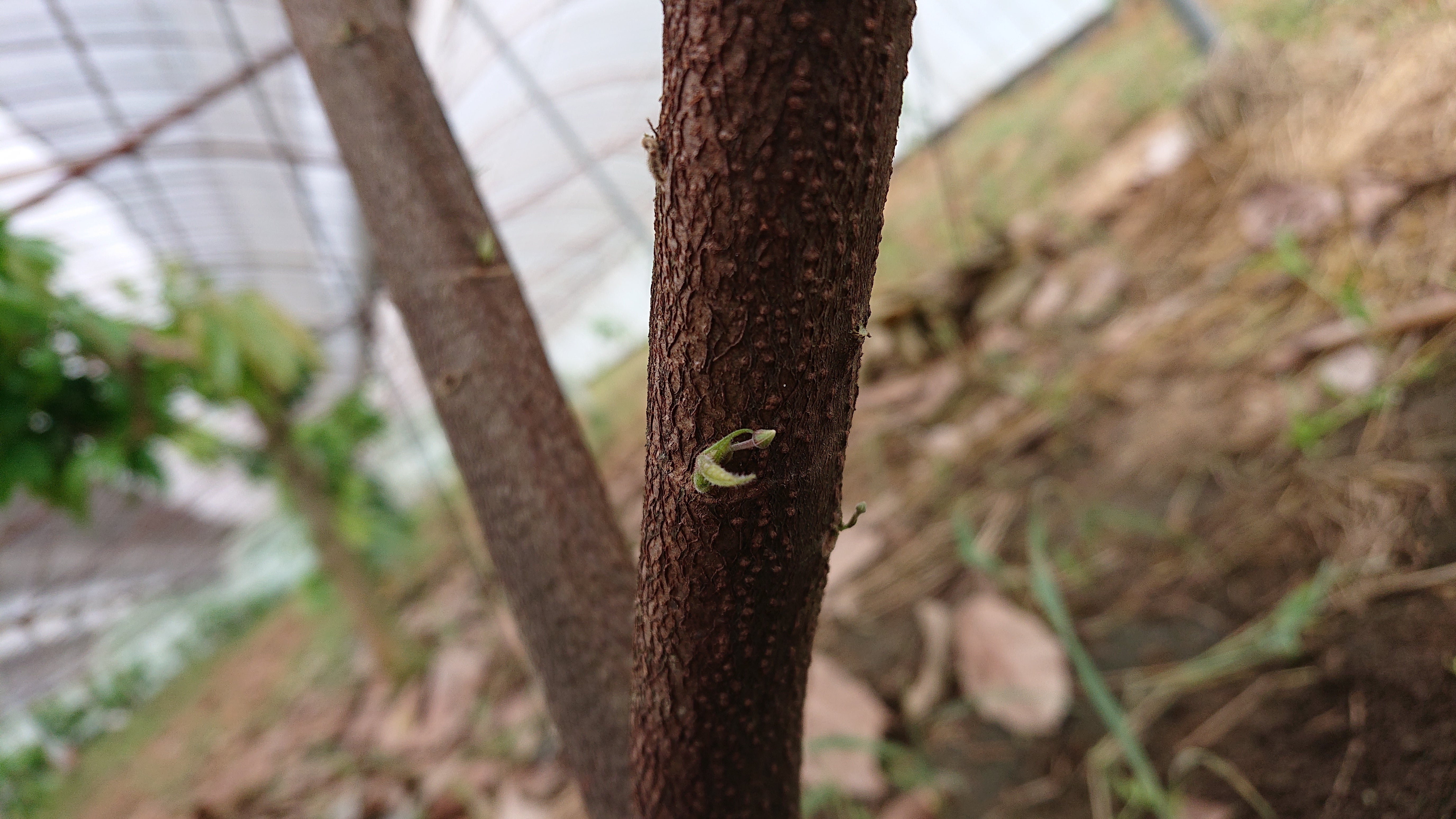 ※写真は、今朝確認したカカオの花芽(蕾)です(木から出てる小さい緑色の部分)。この木はま