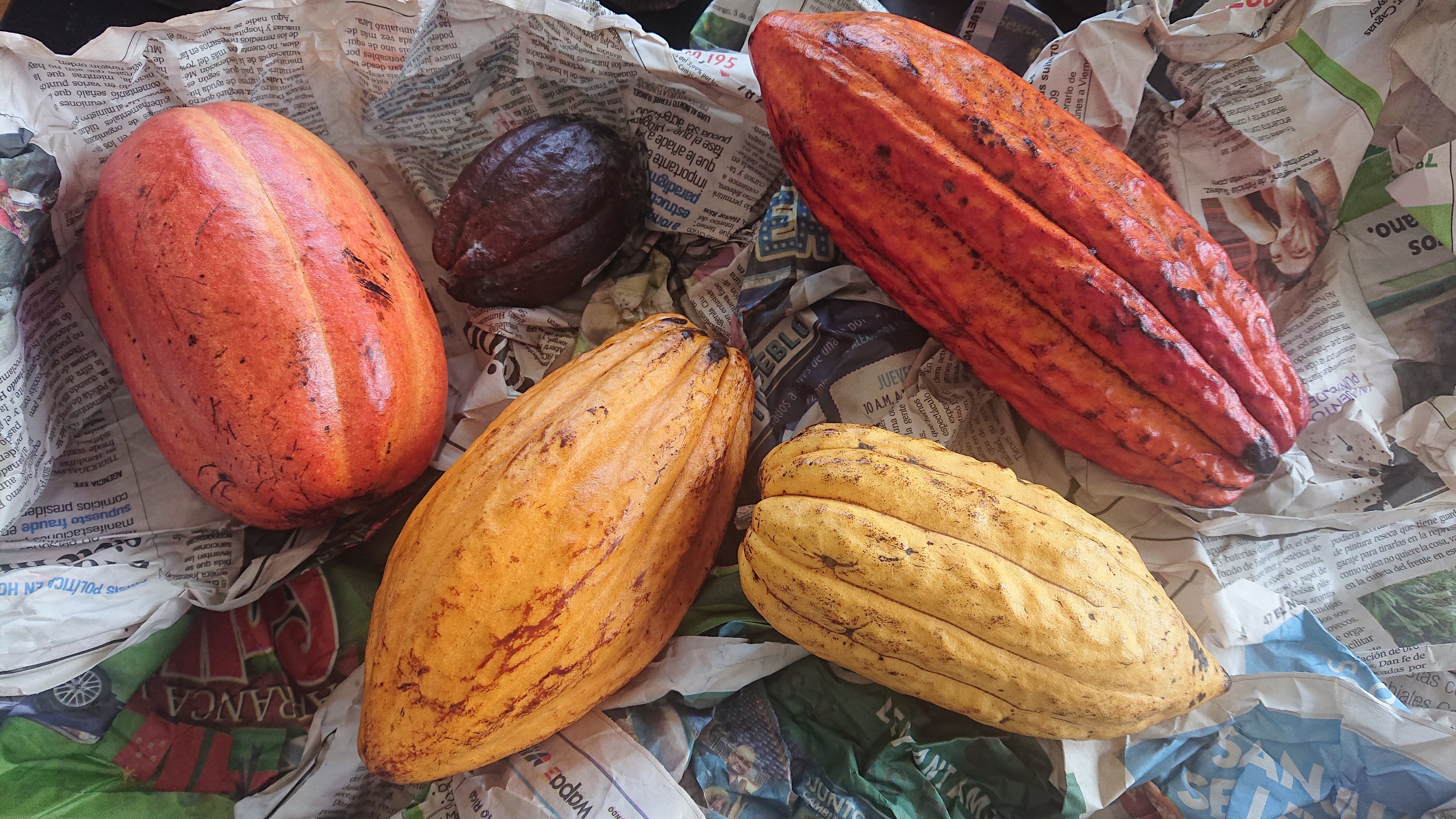 個人輸入した様々な品種のカカオ果実