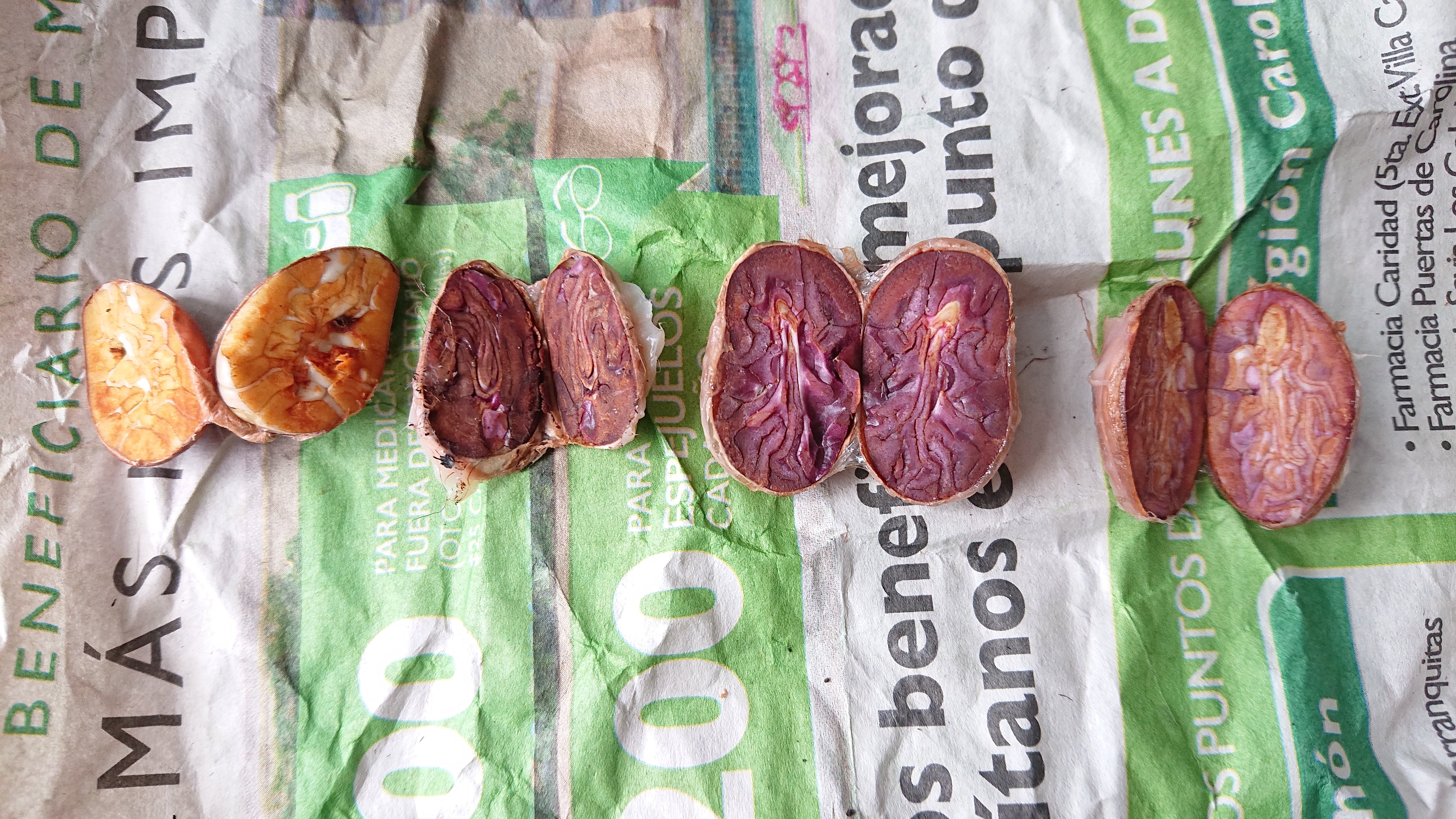 カカオ豆内部(紫色はポリフェノールの一種の色) さらに、宮崎カカオの生産販売によって宮崎に流入したお金が、県内を循環していく流れをつくっていくことも重要です。