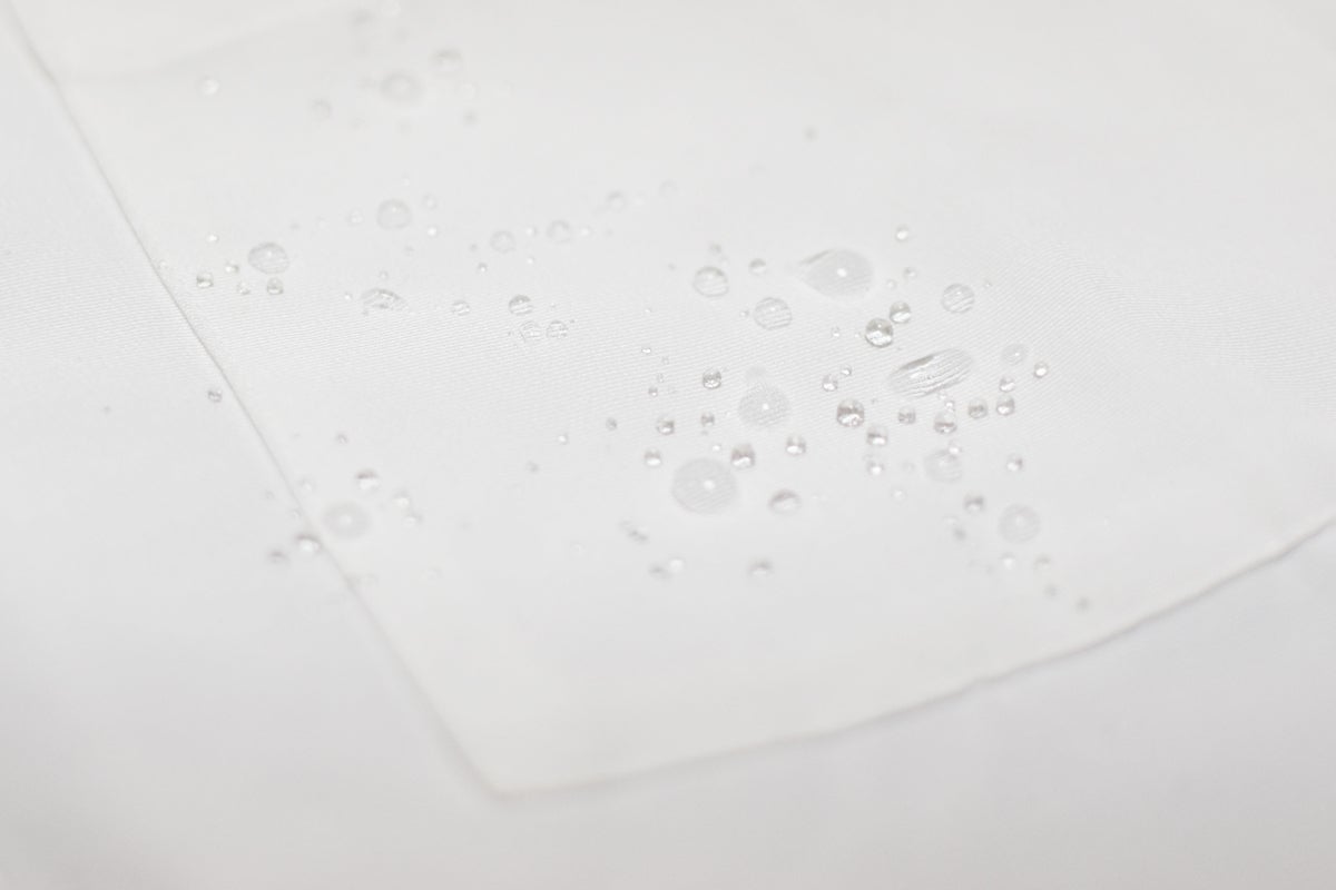 ・撥水効果が落ちた場合には、当て布をしてアイロンで熱を加える事により効果が回復いたします。ただし、洗濯などを繰り返す事や経年劣化による効果減少は避ける事ができません。