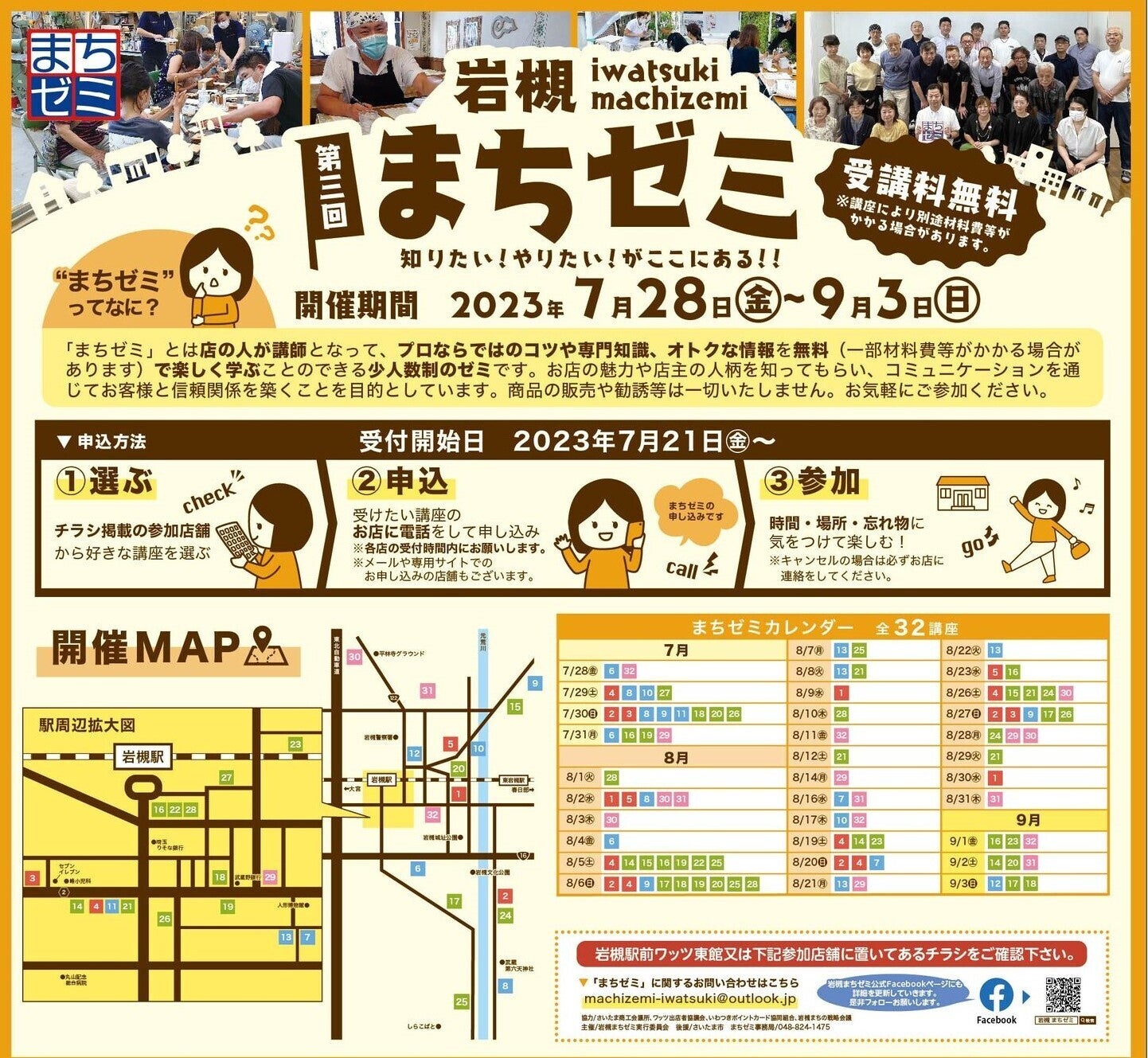 第3回岩槻まちゼミは32ものお店がプログラムを展開しています
