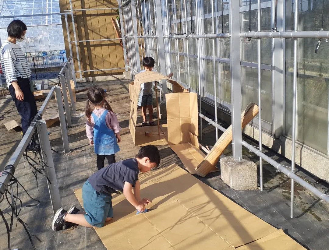 植物販売の温室をお借りしての遊び場