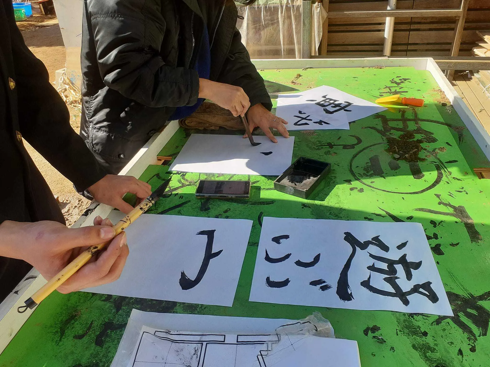 新春の書初め遊び