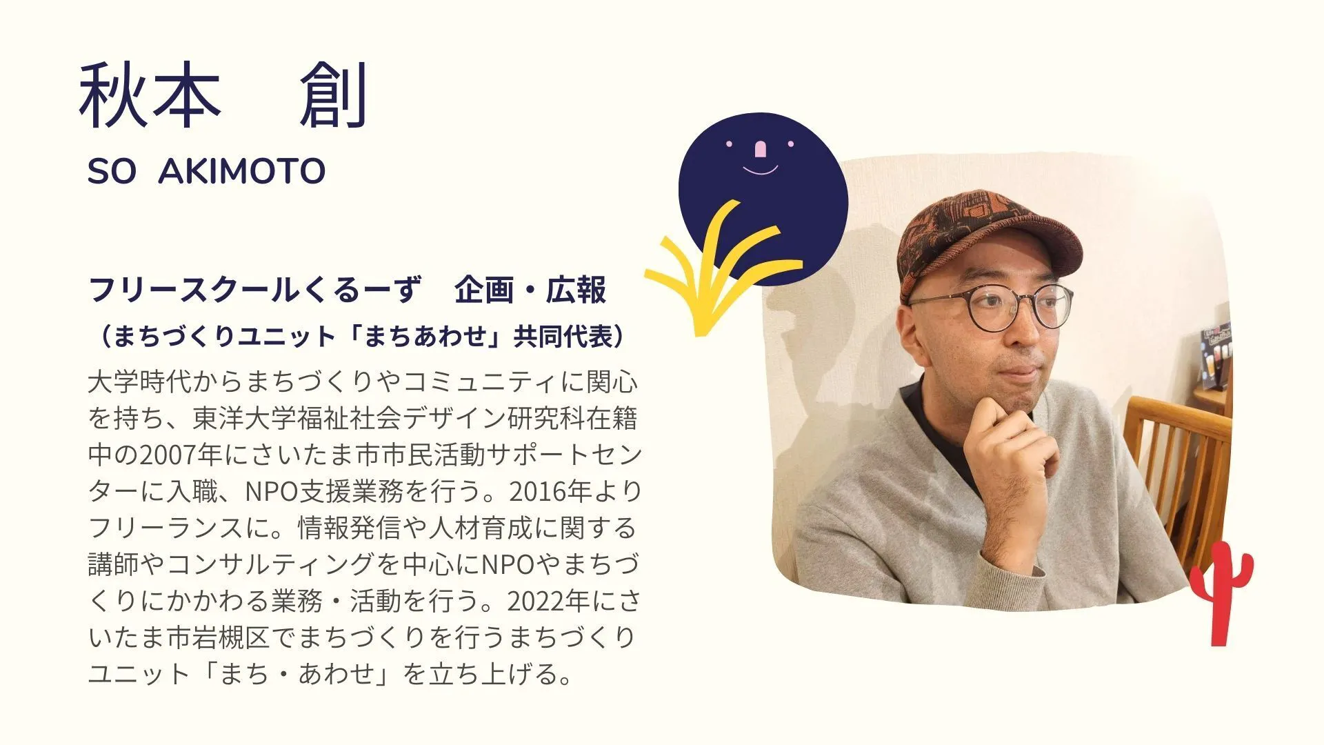 はじめまして。今回のくるーずで広報・企画担当として一緒に活動する秋本創と申します。