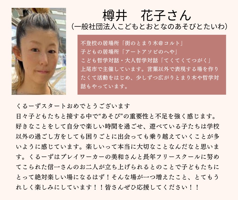 くるーずは、子どもたちが学ぶ場である以上に、私たち大人が子どもたちから学ぶ場にもしていきたいです。ぜひ、今後のくるーずの活動にも注目していただき、ご参加・ご協力いただけましたら幸いです。