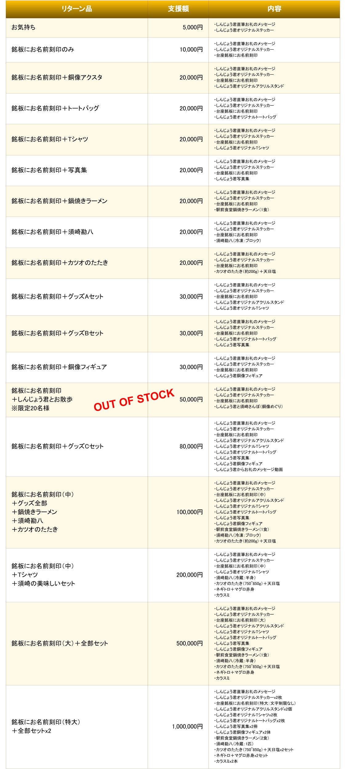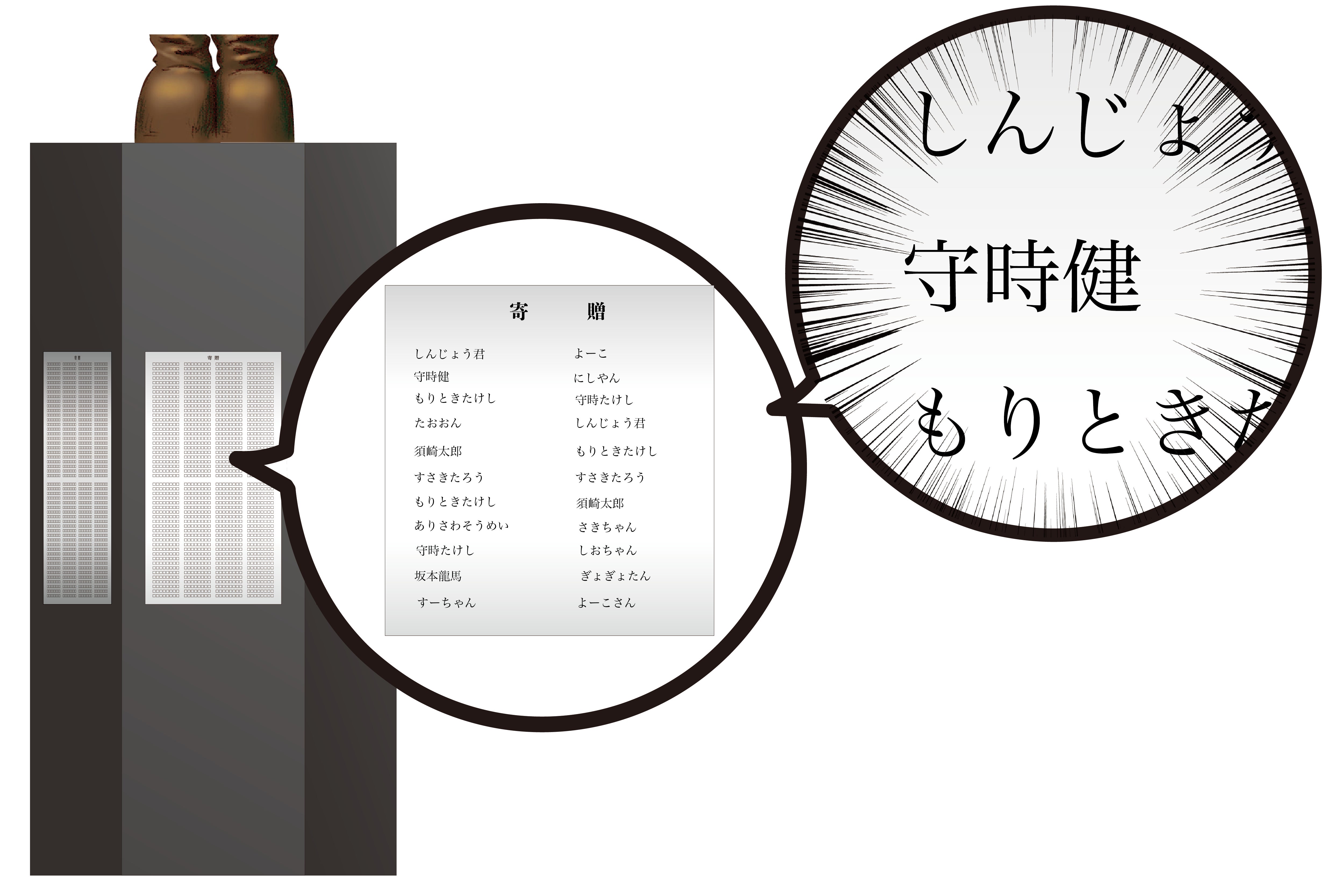 支援者様のお名前を入れさせていただきます!!しんじょう君の銅像とともに半永久的に須崎に設置させていただきます!