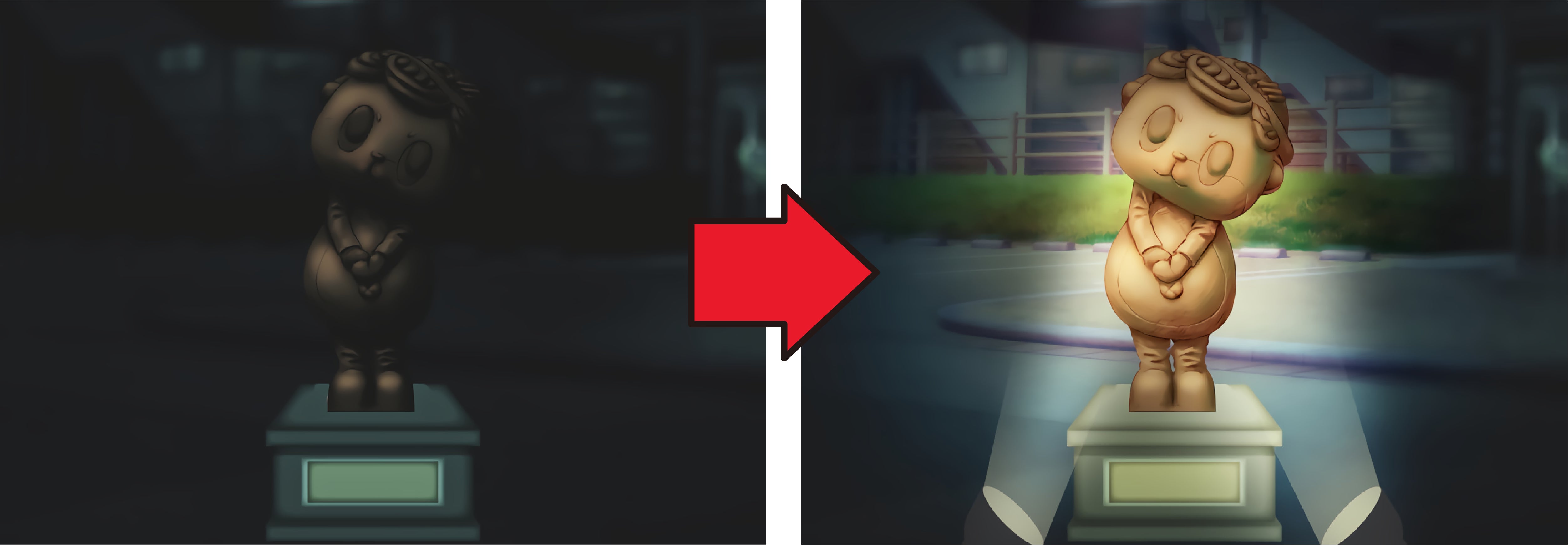 さらに!夜の商店街でもしんじょう君の銅像をはっきり見ていただけるように、