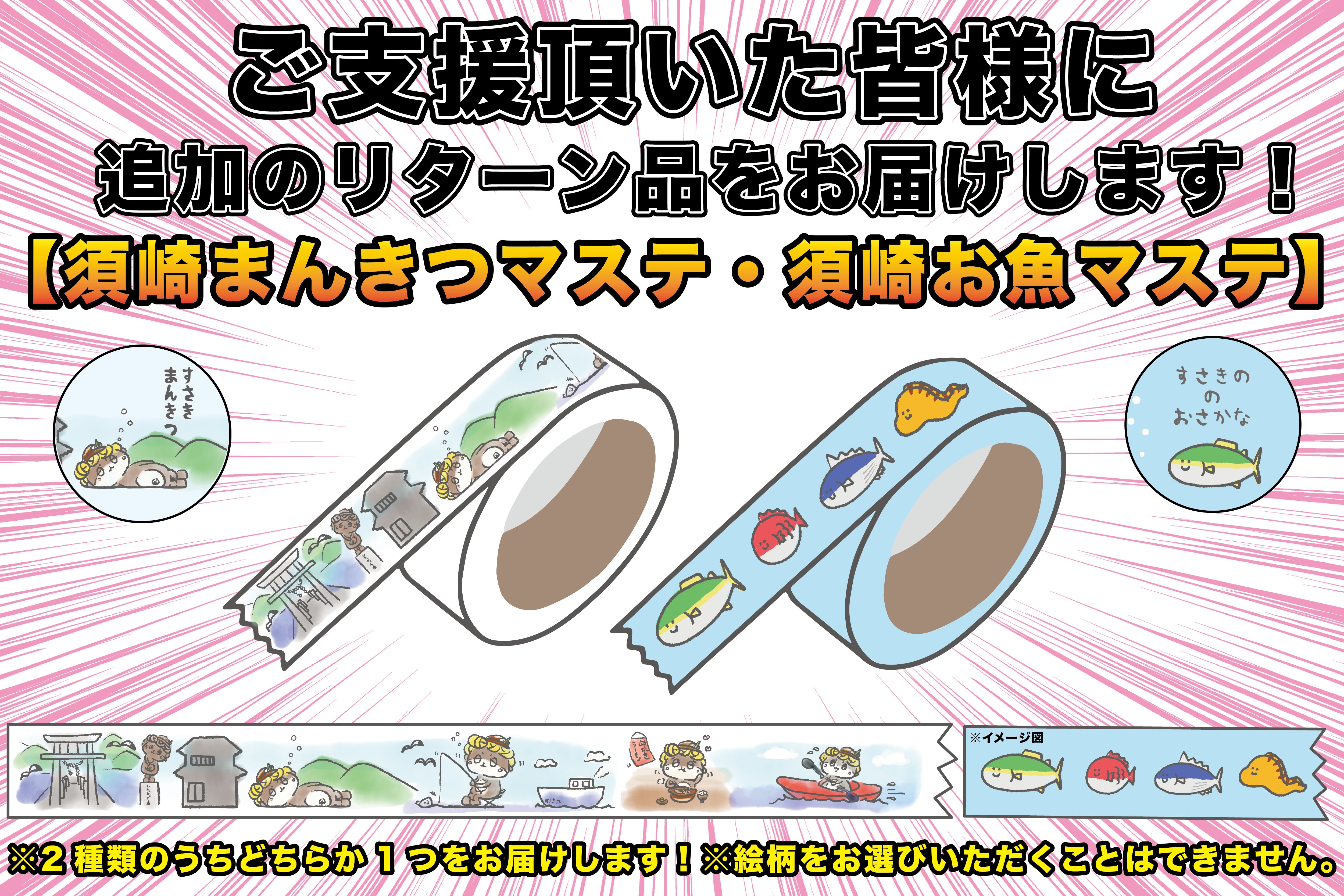 「すさきまんきつマスキングテープ」or「すさきのおさかなマスキングテープ」の、どちらかをお届けします!