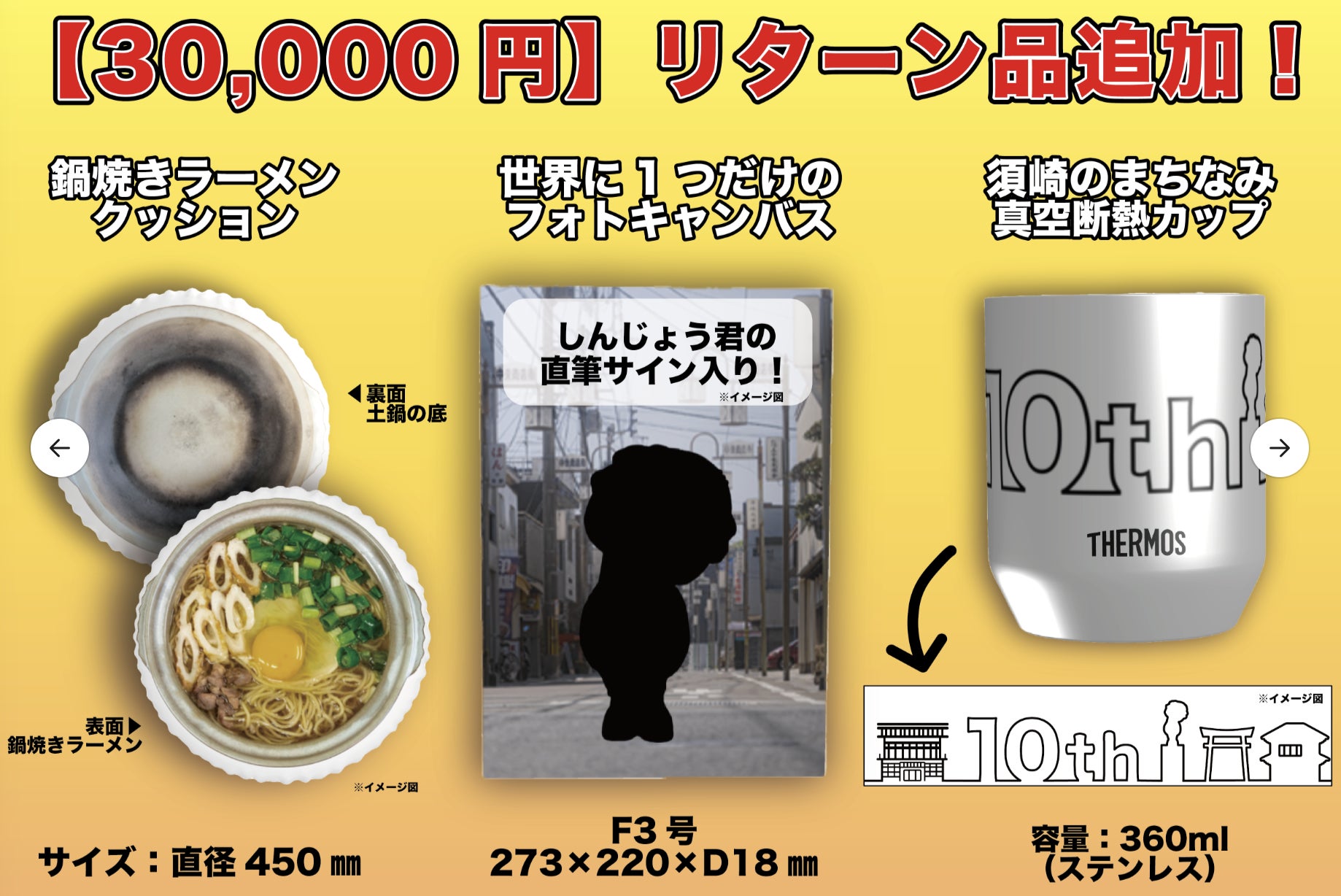 新たなリターン品もご用意いたしました!30,000円コースが3種類と、