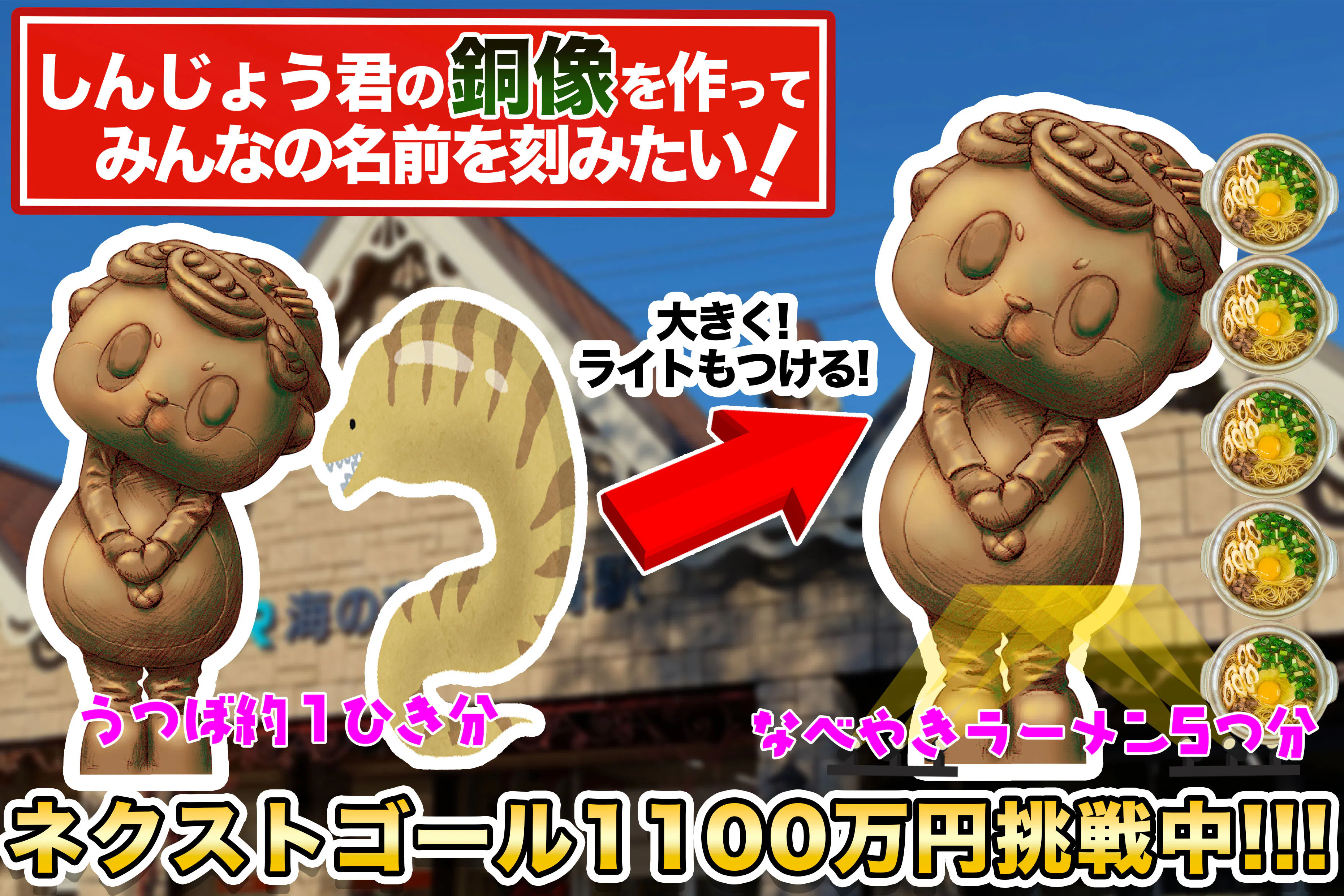 「もっと多くの人と、しんじょう君の銅像=新しい須崎の観光資源 ができる喜びを分かち合いたい…!」