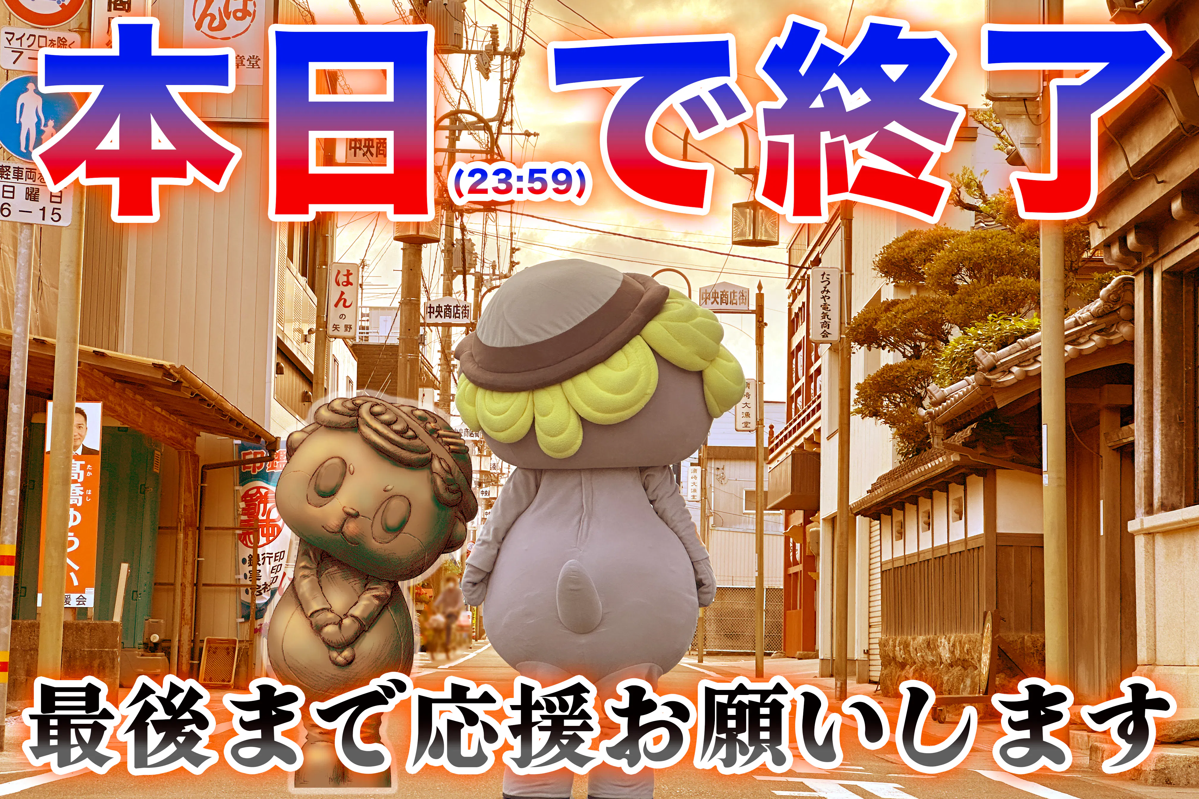 本日23:59をもちまして、【しんじょう君10周年記念】須崎市にしんじょう君銅像を作り、新たな観光地に!のプロジェクトが終了します!!!