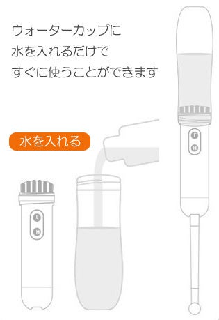 充電式携帯型デリケートゾーンウォッシャーウォルトBDは、付属のウォーターカップとは別にペットボトルコンバージョンが付属していて、大容量のペットボトルにつなげばその分の大容量の水で使うこともできます。