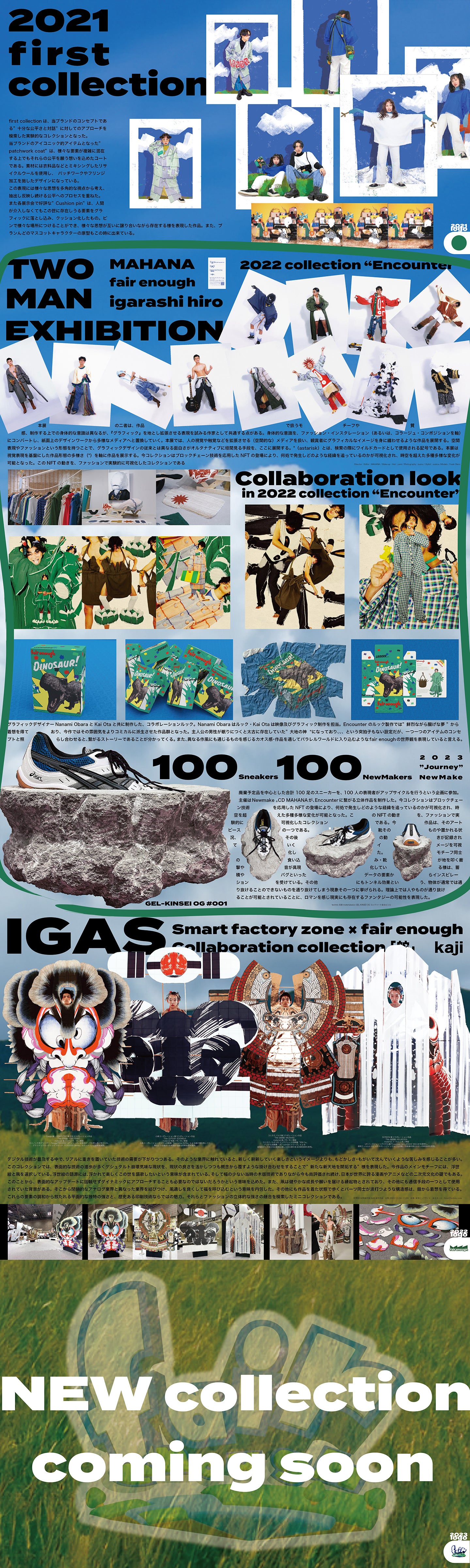 結果的にこの考え方を広めたり、更にアップデートするプラットホームのような場所を作りたいと考えたところからfair enoughは始まりました。これからも私達の作品をどこまでも連れて行っていただき、この輪を広げて行きたいです。