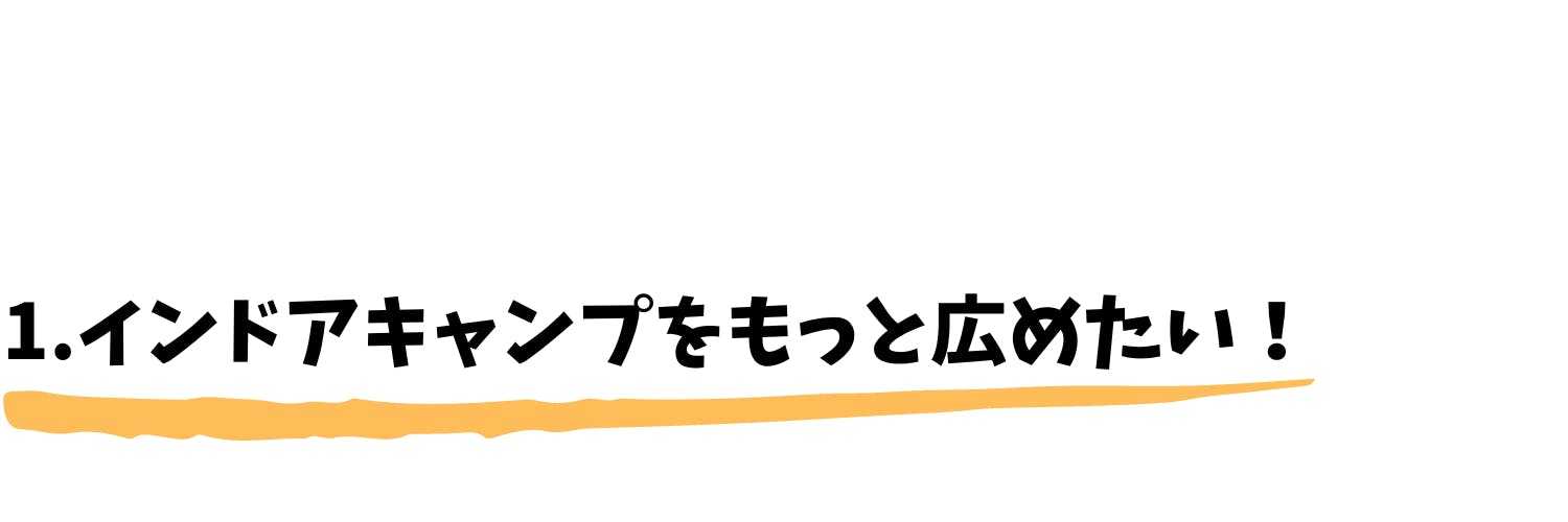 しかし、インドアキャンプの存在をもっと多くの人に知ってもらい、忙しい人にも手軽にリフレッシュできる環境があればと思いました。