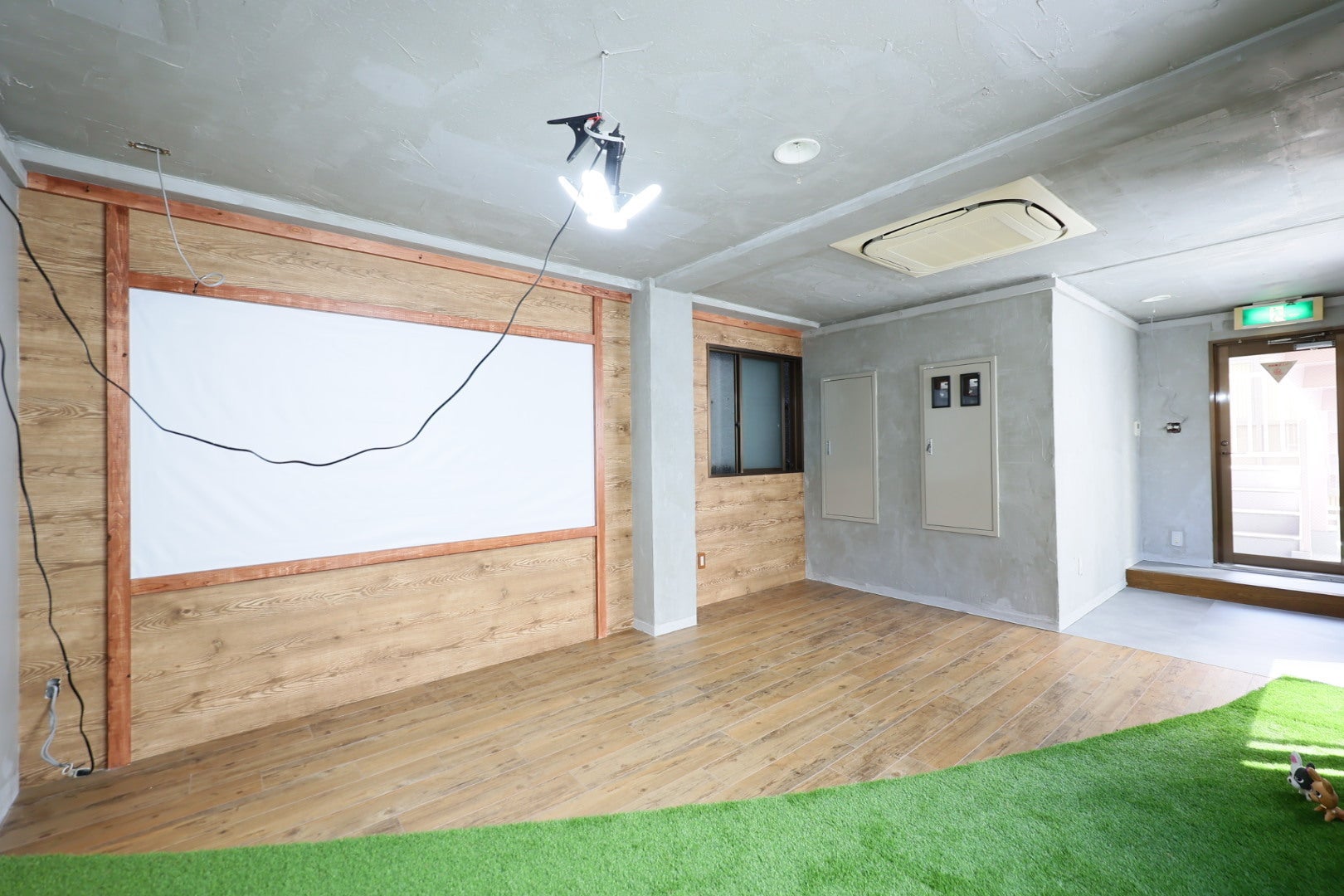 カメラマンの方に写真を撮ってきていただきました!木の壁とこだわった人工芝でインドアキャンプの雰囲気が出てきました!