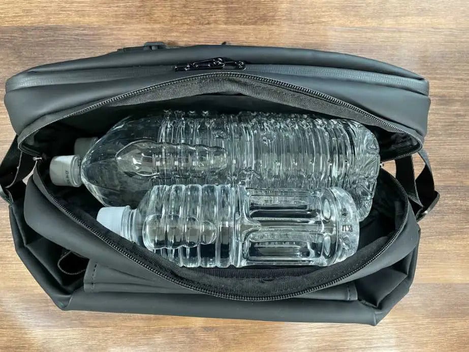 ちなみに、2Lが3本だとファスナーが閉まりませんでした…