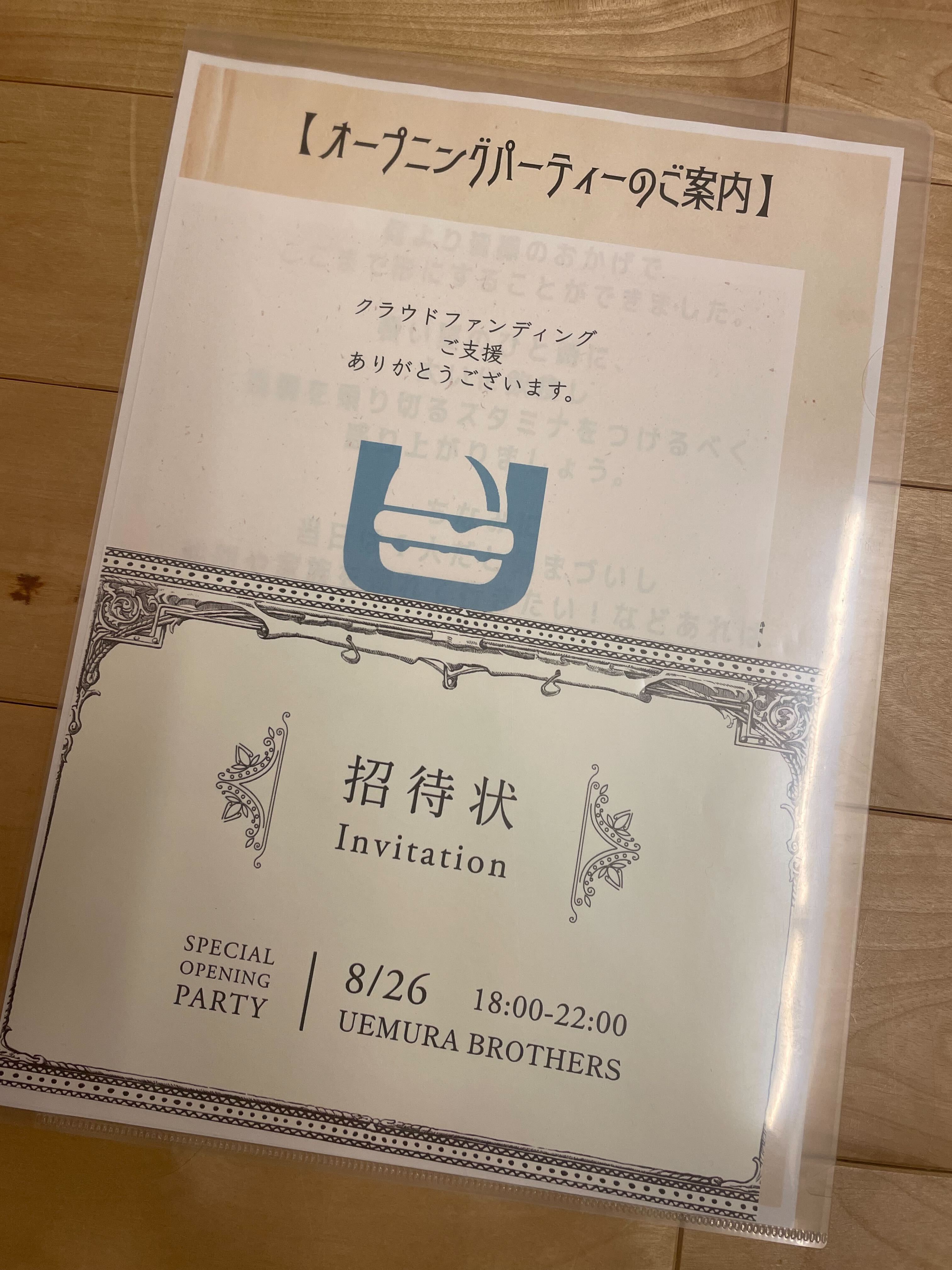 招待券をお持ちの上、8/26 UEMURA BROTHERS 店舗にお越しください!