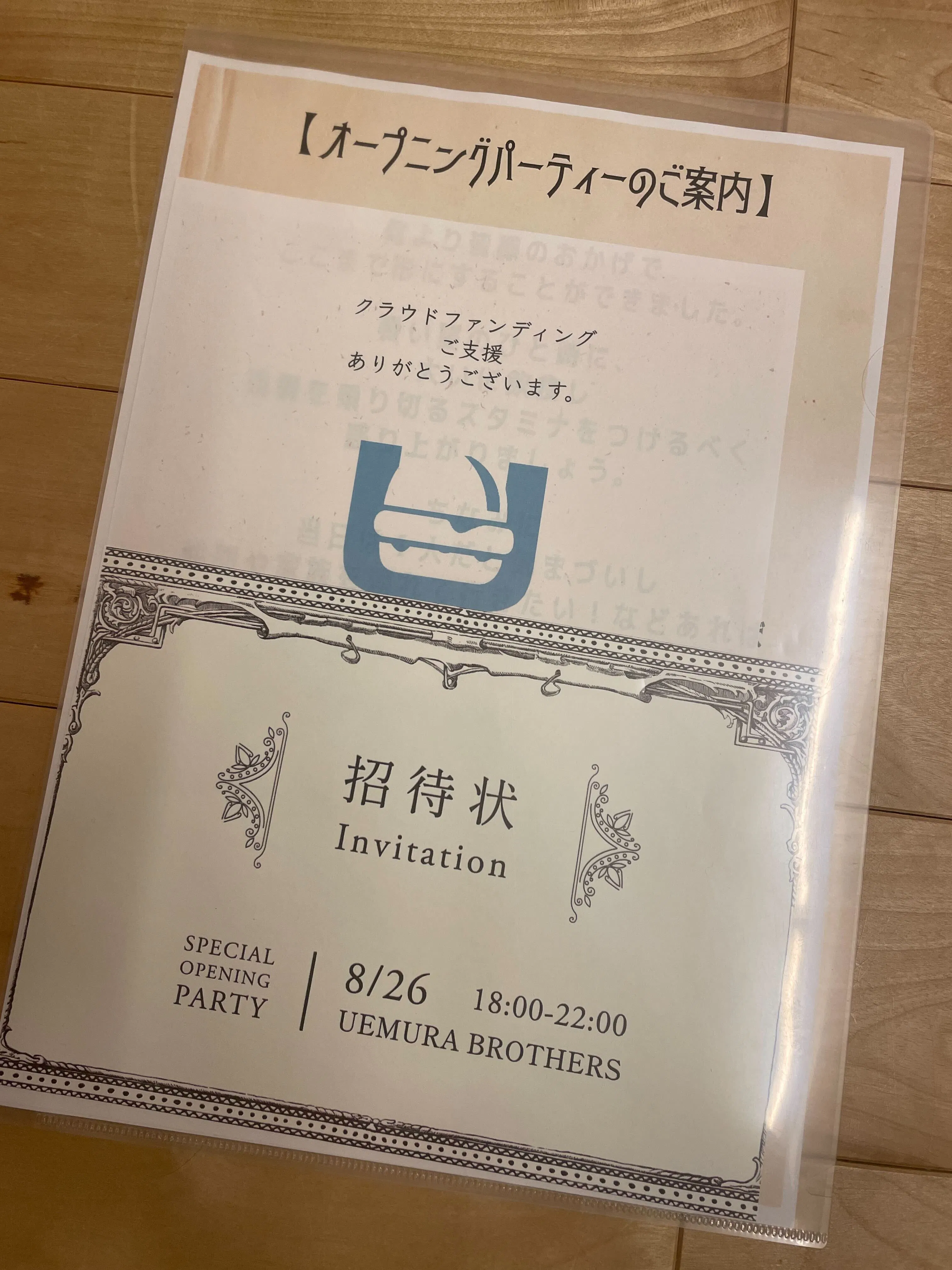 Tシャツと商品券につきましても8月順次発送して行きますので、お待ちいただければと思います!(OPEN記念パーティーへの招待券と「Tシャツと商品券」をご支援いただいた方に関しましては、先に招待券のみ発送させて頂きました)