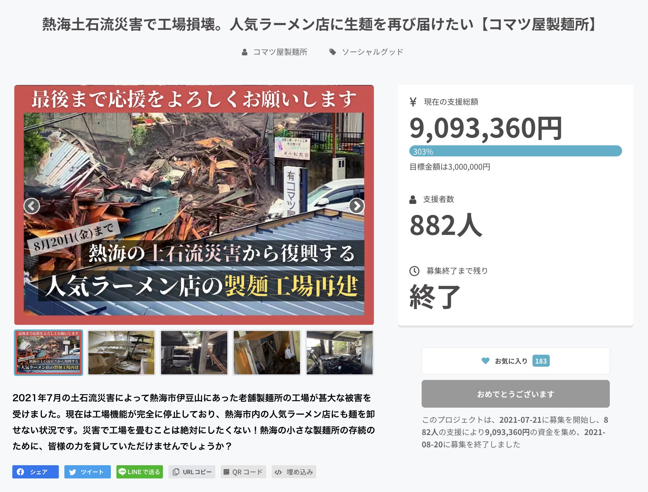 » コマツ屋製麺所の「熱海土石流復興麺」を応援購入する(5,000円)