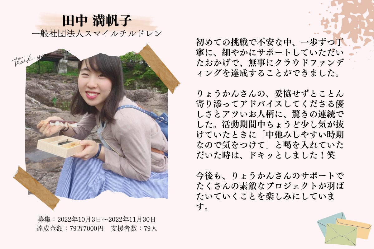 今日紹介するのは、一般社団法人スマイルチルドレンの「田中満帆子さん」です。