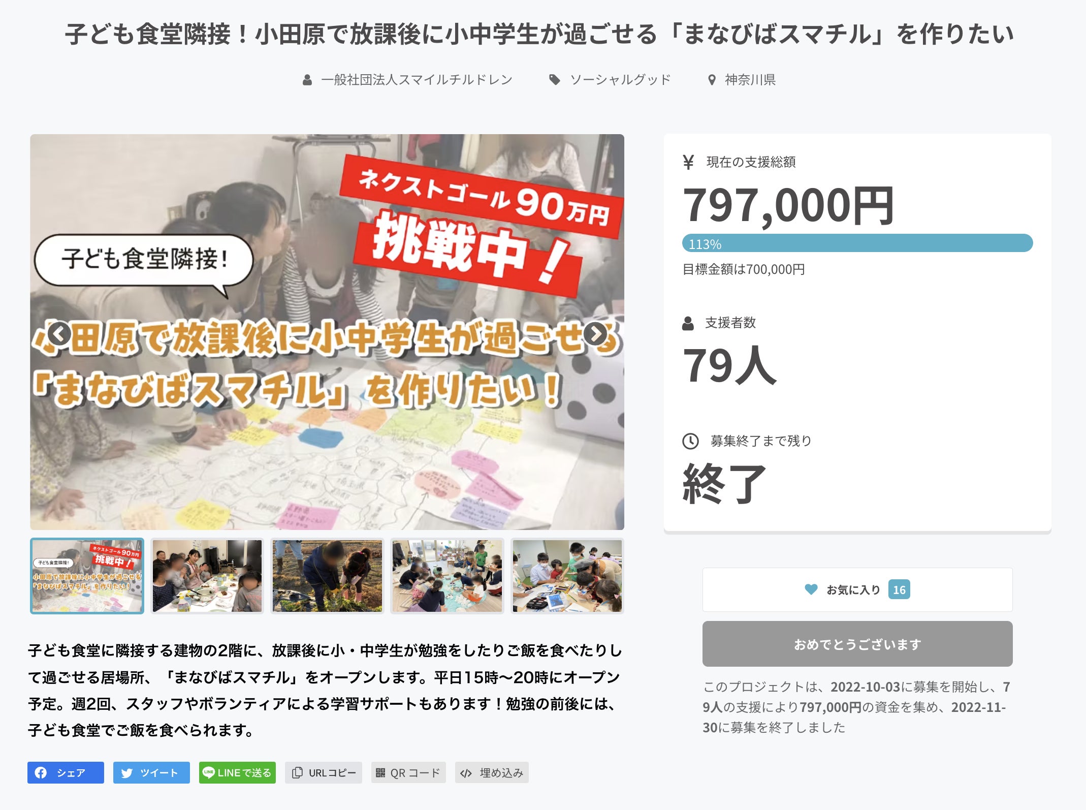 そして、これまで運営してきた子ども食堂の隣に「小中学生が放課後に勉強をしたりご飯を食べたりして過ごせる居場所(まなびばスマチル)をオープンする」ということを決め、その運営資金を集めるためのクラウドファンディングに挑戦されました。