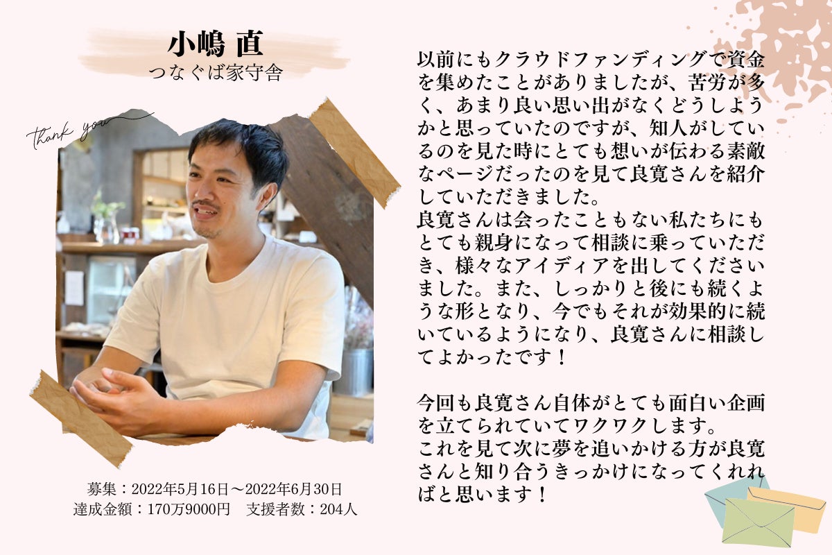 どうも、CAMPFIREパートナーの岡田良寛(りょうかん)です。