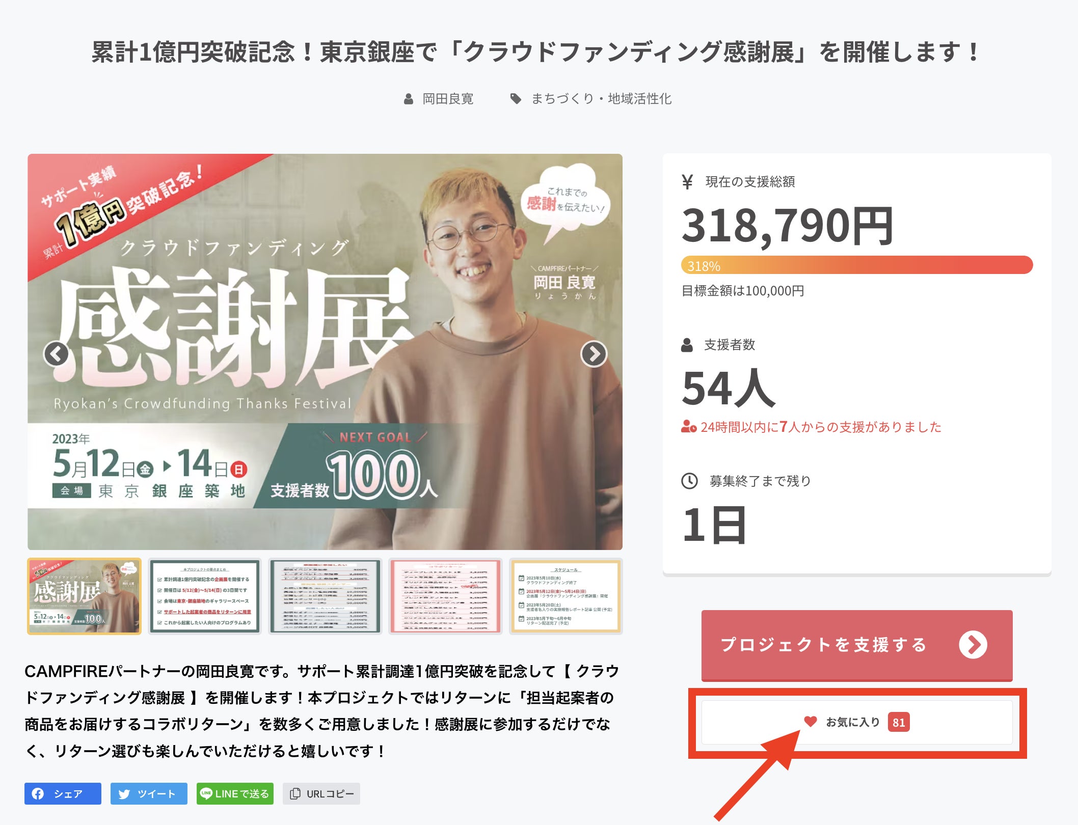 プロジェクトを【 お気に入り登録 】しておくとメールでお知らせの通知が届きますので、ぜひポチッと押しておいてもらえると嬉しいです!(お気に入り登録100人を目指してます!!)