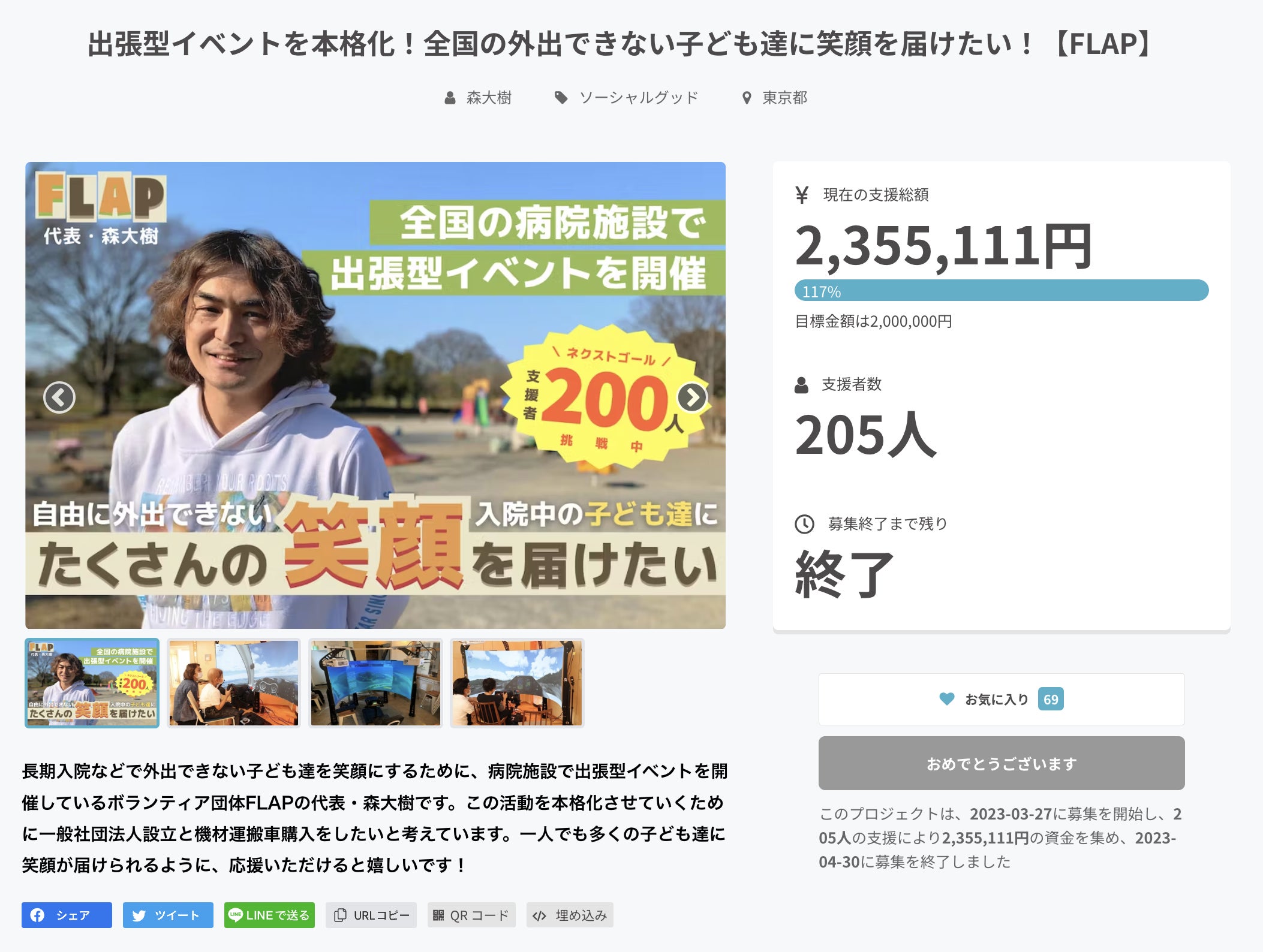 結果としては総勢205名から約235.5万円の支援が集まり大成功を収めました!!