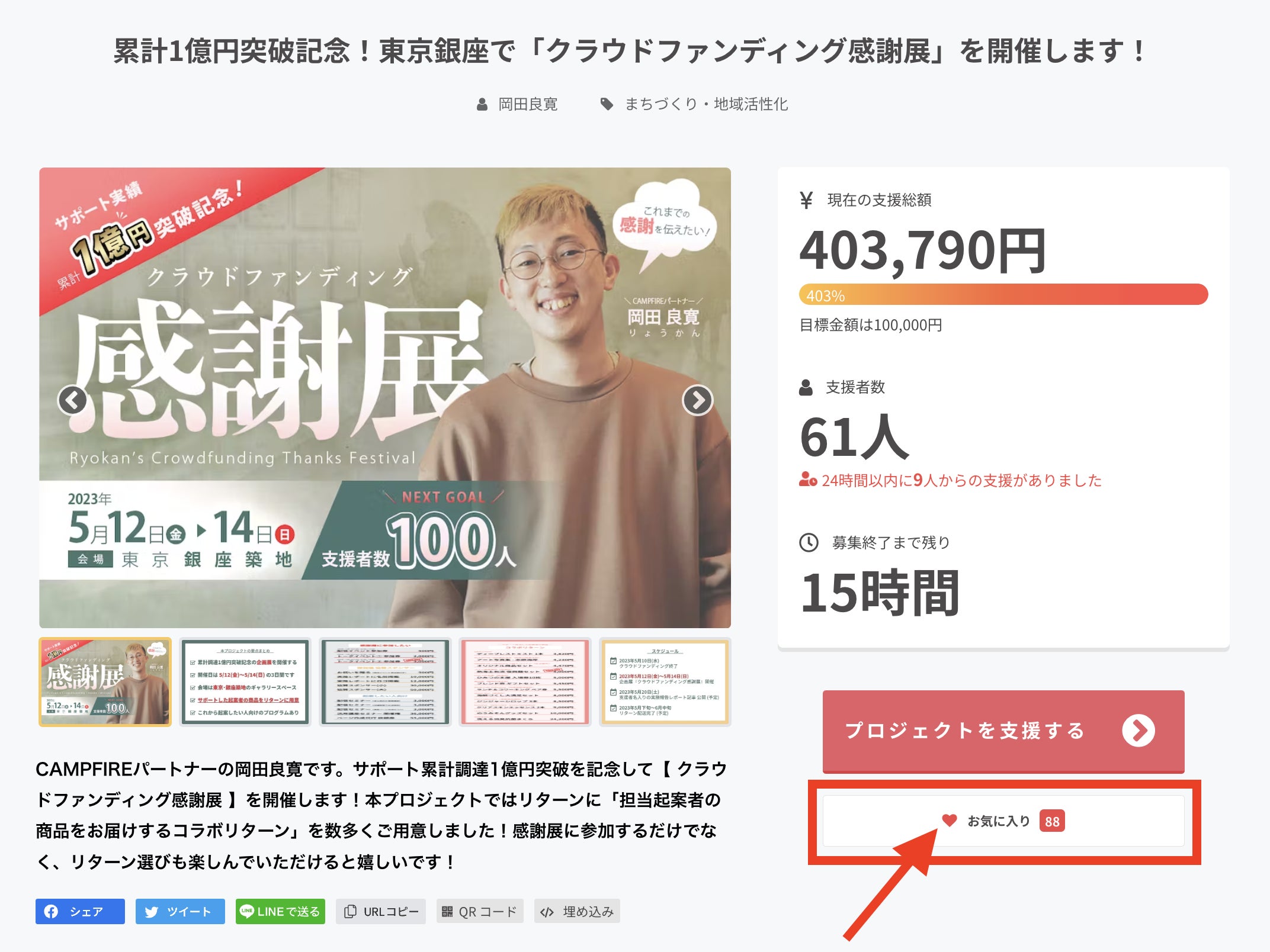 プロジェクトを【 お気に入り登録 】しておくとメールでお知らせの通知が届きますので、ぜひポチッと押しておいてもらえると嬉しいです!(お気に入り登録100人を目指してます!!)