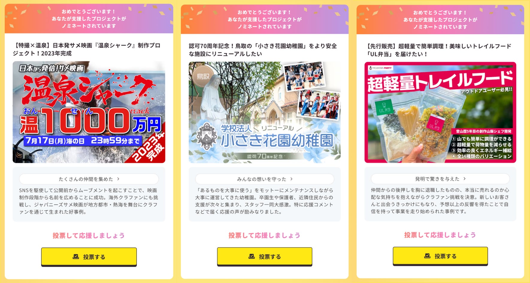 今年の「CAMPFIREクラウドファンディングアワード2023」に僕の担当したプロジェクトが3件もノミネートされています!!