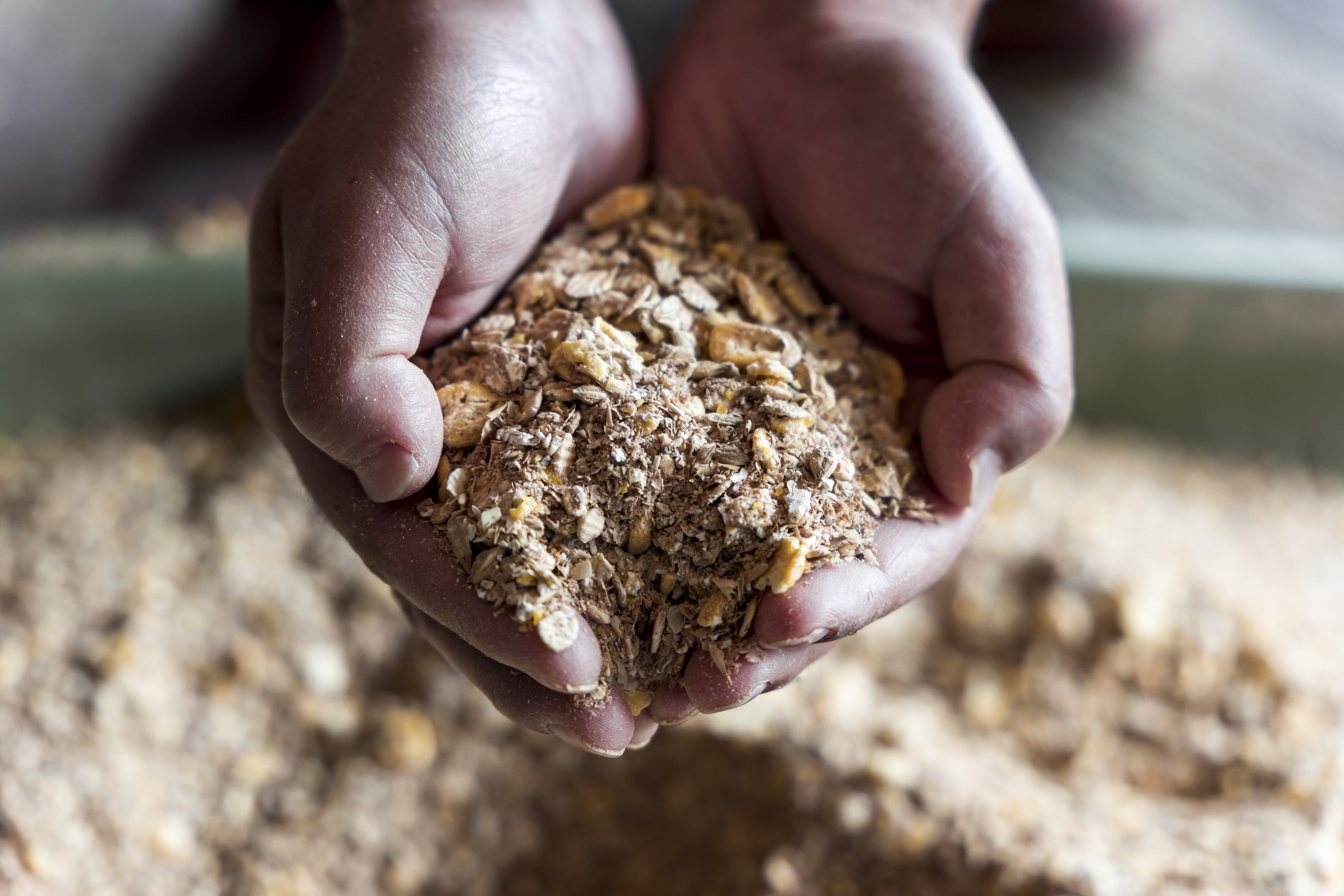 通常、肉牛の飼料に使われる素材は大麦、ふすま、トウモロコシなど。能登牧場ではより低カロリーで牛を健康に保つ素材を追求し、3代目平林明の長年の経験と良い牛を育てたいという探餌の餌の改良探究心から「配合飼料 明」を飼料メーカーと共同で開発しました。