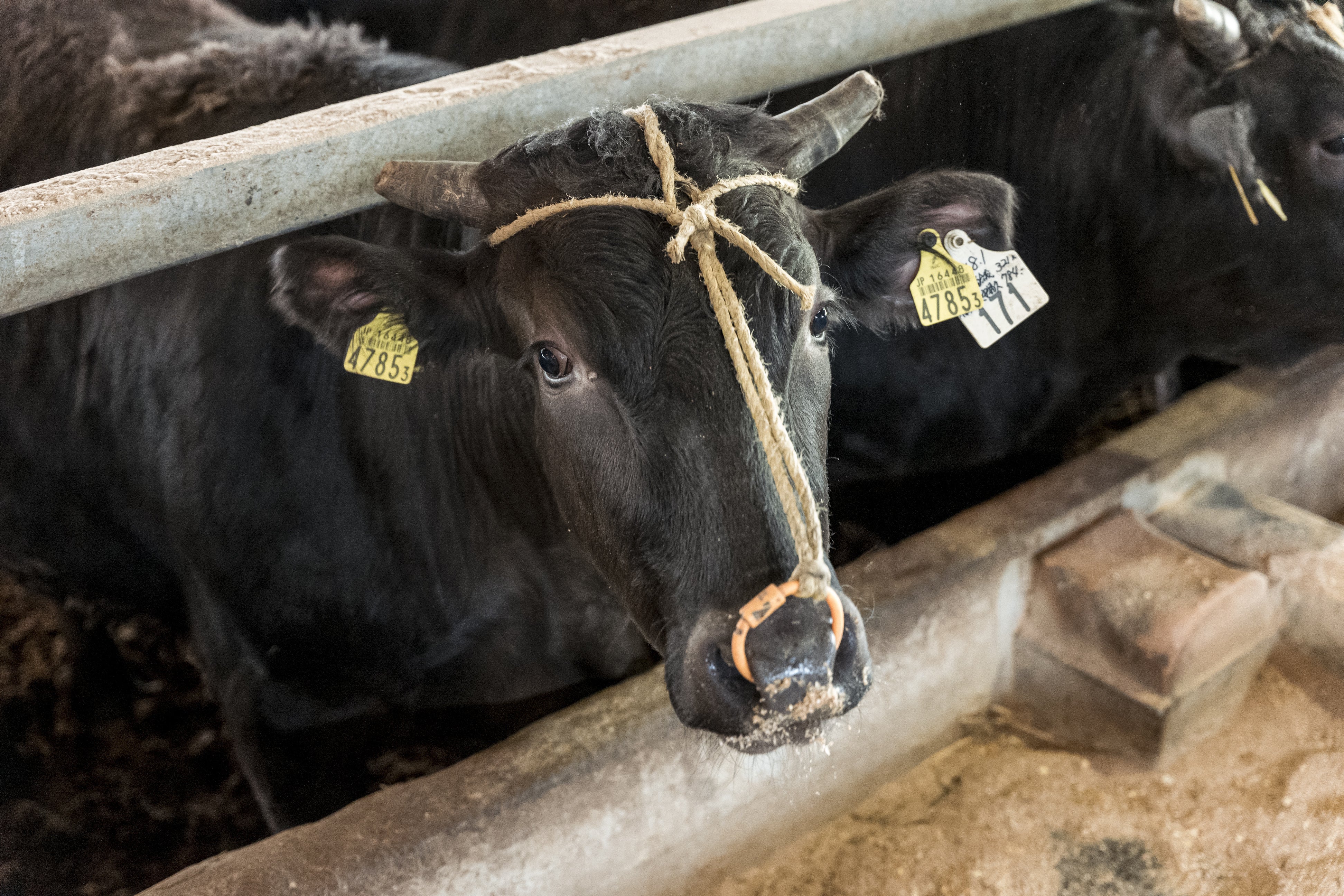プロジェクトのために平林さんが選んだのはこちらの一頭です。2023年4月時点で46ヵ月齢。プロジェクトが終了する5月末に出荷される頃に47ヵ月齢を迎えます。